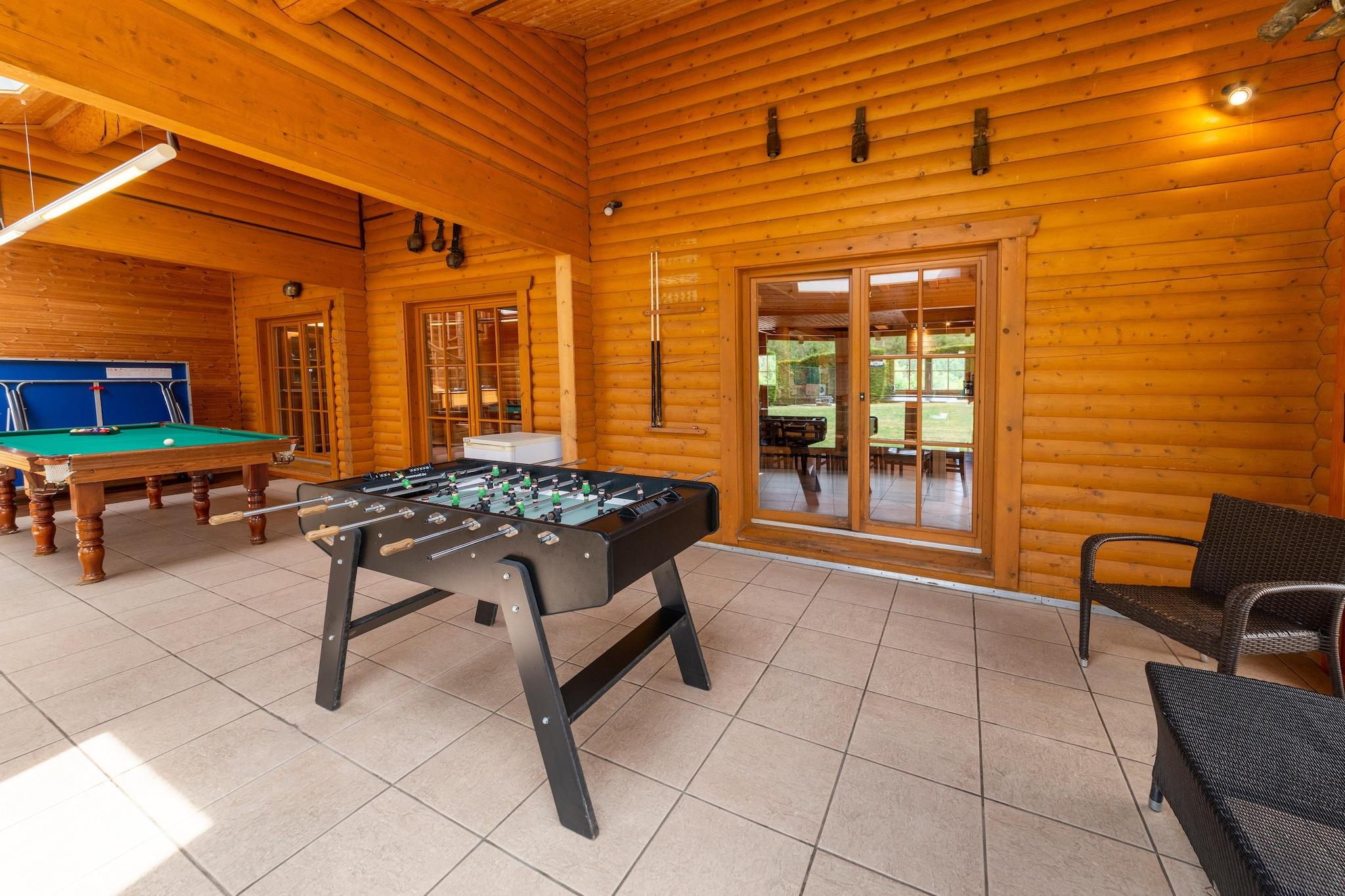 Dette rummelige feriehus i Durbuy, beliggende på Allée Du Val 62, kan komfortabelt rumme op til 22 gæster, ideelt til store grupper eller familier. Beliggende i et fredeligt skovområde kun 100 m fra skoven, 200 m fra golfbanen og 1 km fra en sø, tilbyder det nem adgang til natur og udendørs aktiviteter. Den historiske bymidte ligger 5 km væk, med charmerende gader, restauranter og butikker. Indenfor har stueetagen en hyggelig stue med pejs og tv, en stor spiseplads og et fuldt udstyret køkken med flere ovne, komfurer, kaffemaskiner og opvaskemaskiner. Soveværelser med enkeltsenge og køjesenge har eget badeværelse. Et legerum med bordtennis, billard og bordfodbold sørger for underholdning. Ovenpå har flere soveværelser med en-suite badeværelser og en terrasse. Udenfor kan du nyde den lukkede have, grill, havemøbler og parkering. Nærliggende faciliteter omfatter Adventure Valley-parken, restauranter, almindelige forsyninger og offentlig transport. Kæledyrsvenlig og perfekt til en afslappende grupperejse.