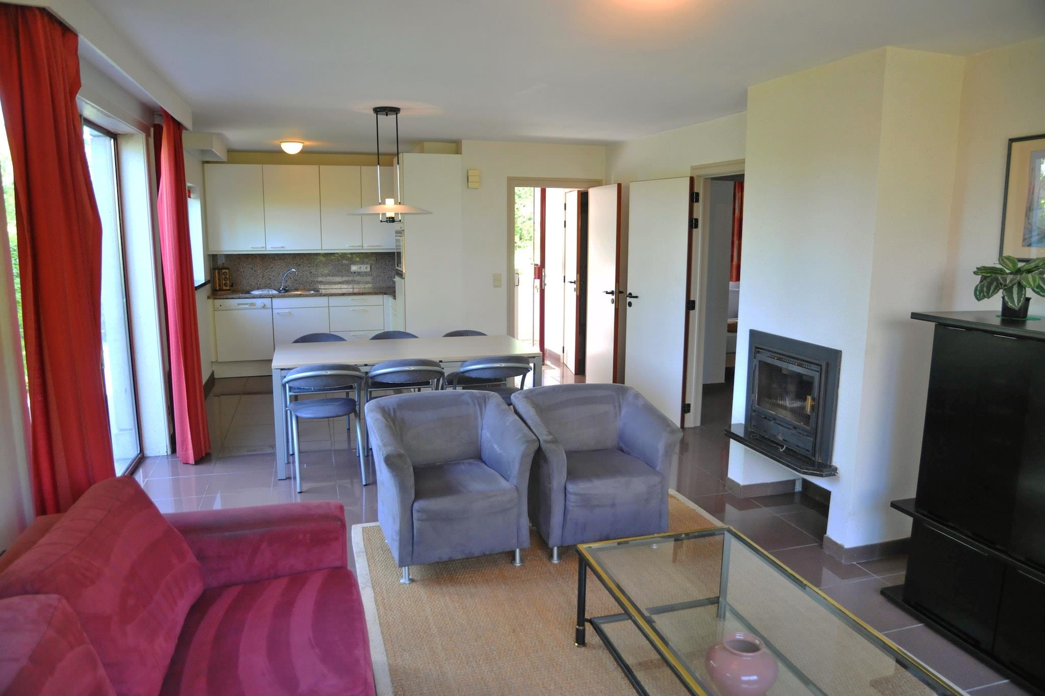 Nyd denne indbydende 76m² stuelejlighed beliggende i et fredeligt villakompleks i Durbuy. Slap af i den lyse stue med en varm åben pejs, dobbelt sovesofa, tv og dvd-afspiller - perfekt til at slappe af efter en dag med udforskning. Det åbne køkken er fuldt udstyret med kaffemaskine, mikroovn og opvaskemaskine. To komfortable soveværelser rummer din gruppe, plus et badeværelse med både badekar og bruser, en ekstra bruser og et separat toilet tilføjer bekvemmelighed. Tag din lodne ven med for at nyde nærliggende naturskønne vandrestier langs Ourthe-floden eller den frodige Parc des Topiaires, begge populære steder for kæledyrsejere at slentre og lege. Efter en aktiv dag kan du slappe af sammen på din private terrasse med havemøbler eller tage en forfriskende dukkert i den fælles swimmingpool, der er åben i de varmere måneder. De fredelige omgivelser er perfekte for familier og kæledyrselskere, der søger en naturflugt. Kun en kort køretur fra din dør byder Durbuys charmerende gader på en række kæledyrsvenlige caféer og restauranter, hvor du kan nyde lokale Ardenner-køkken og sæsonbestemte specialiteter. Mange spisesteder byder kæledyr velkommen på deres terrasser, så du ikke behøver at efterlade din ledsager, mens du nyder lækre måltider og byens fortryllende atmosfære.