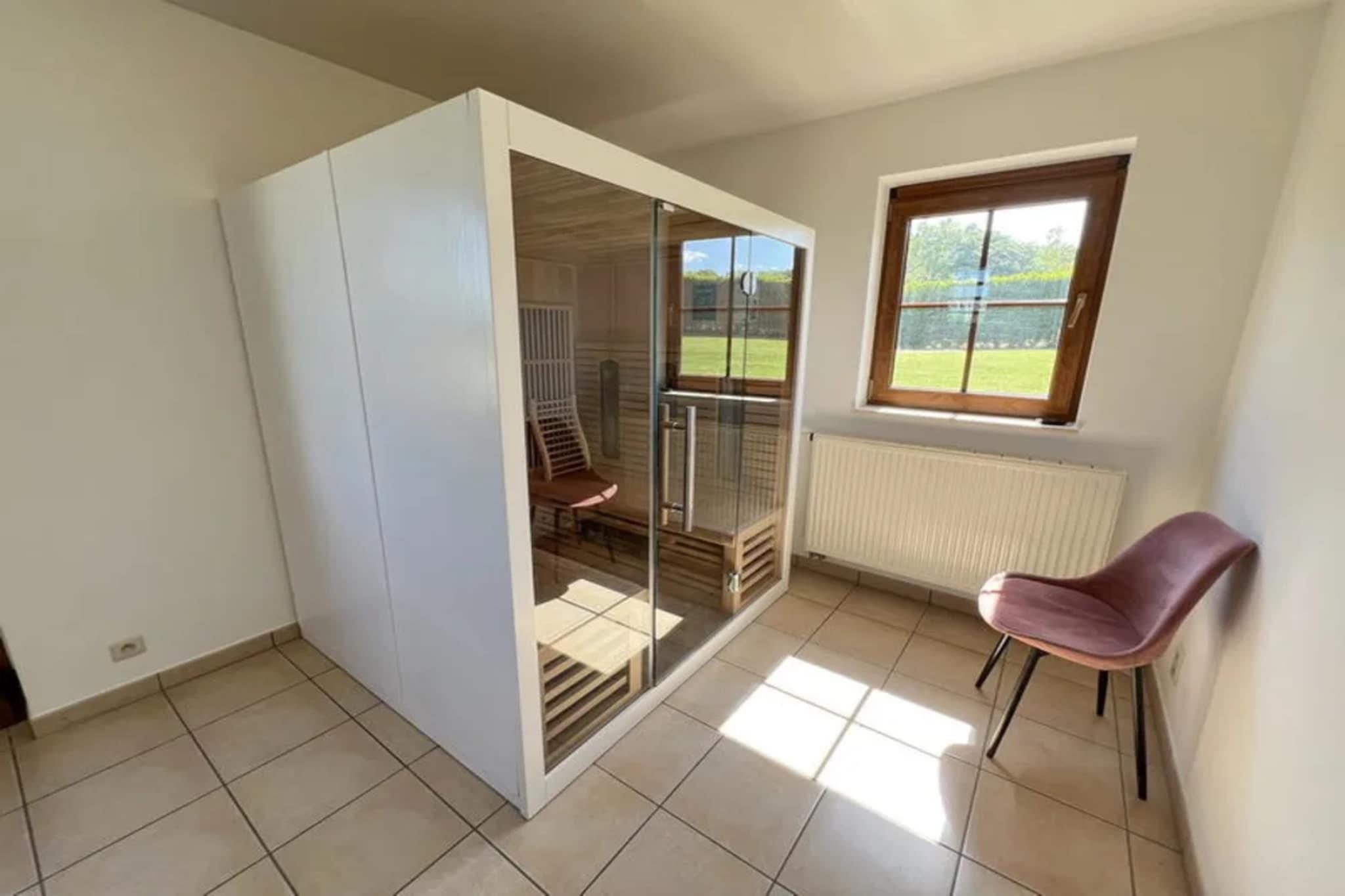 Gemt væk i Durbuys maleriske charme, ofte kaldet "verdens mindste by", tilbyder denne indbydende villa en perfekt blanding af komfort og karakter. Den rummelige stue med digital-tv, spisebord og hyggelig pejs skaber rammerne for afslappende aftener. Et åbent køkken udstyret med keramisk kogeplade, ovn, mikrobølgeovn, kaffemaskine, elkedel, brødrister, opvaskemaskine og køleskab med fryser giver alt, hvad du behøver for at lave lækre hjemmelavede måltider under dit ophold. Villaen har fem omhyggeligt indrettede soveværelser, der tilbyder fleksibilitet for familier eller grupper. To værelser har komfortable dobbeltsenge med to enkeltsenge, mens de resterende værelser er møbleret med enkeltsenge, ideelle til både børn og voksne. Tre moderne badeværelser med brusere sikrer bekvemmelighed for alle gæster. Yderligere faciliteter inkluderer garage, centralvarme, Wi-Fi, vaskemaskine, tørretumbler, sauna, terrasse, grill og udendørs siddepladser - hvilket gør det nemt at slappe af og nyde både indendørs og udendørs liv. Ud over villaen indbyder Durbuys brostensbelagte gader og historiske arkitektur til afslappende spadsereture. Den nærliggende Topiary Park byder på finurlige planteskulpturer, mens Adventure Valley Durbuy tilbyder udendørsaktiviteter såsom kajaksejlads, klatring og cykling. Naturelskere kan udforske stierne langs Ourthe-floden eller besøge de gamle kalkstensklipper ved Rocher de la Falize. For et strejf af historie ligger den charmerende landsby Wéris med sine forhistoriske megalitter kun en kort køretur væk og tilbyder et unikt glimt af Belgiens gamle fortid.