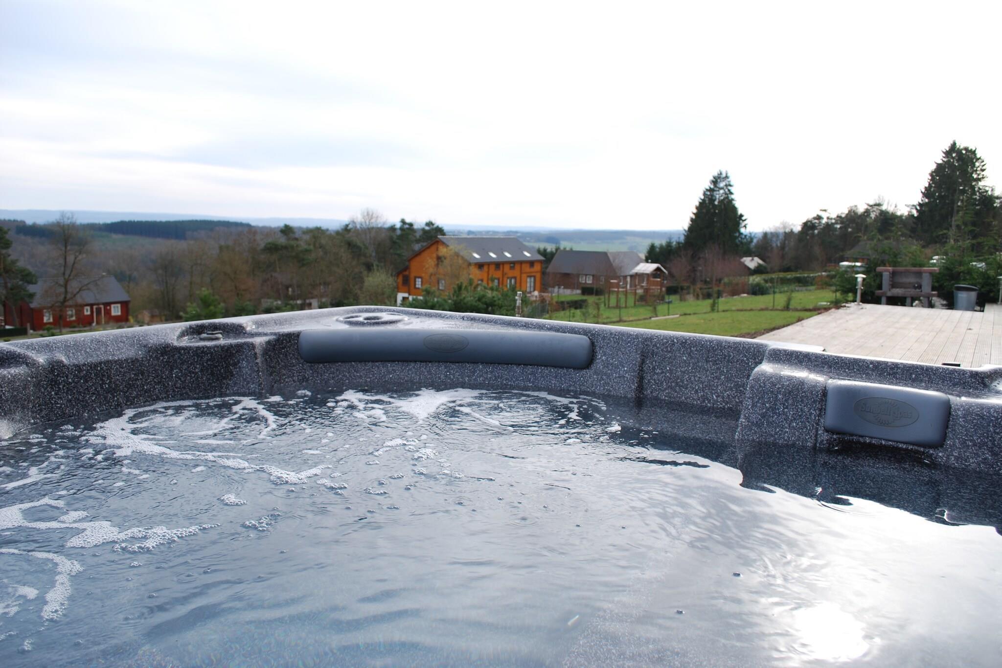 Chalet Durbuy XL ligger i det fantastiske Durbuy-land. Boligen blev bygget i 2009. Det er kun få kilometer fra to golfbaner og forskellige andre udendørs aktiviteter. Denne smukke nye hytte er på 2.000 m2 grund og har en række solterrasser. Huset er fyldt med naturligt lys. Det har mange panoramaudsigt over det bakkede Ardennernes landskab. Huset er udstyret med alle moderne bekvemmeligheder. Du kan nyde saunaen eller bare slappe af på den komfortable sofa i den attraktive stue med brændeovn. Du kan tilberede fantastiske måltider i det store designer køkken. Syv af de otte værelser har eget toilet, brusebad og / eller bad. Der er masser af privatliv selv for den største gruppe. Huset har spil som bordfodbold. Chalet Durbuy XL er den ideelle indkvartering til familier, virksomheder eller grupper, der nyder luksusen af et hotel, men ønsker en mere personlig og intim atmosfære.