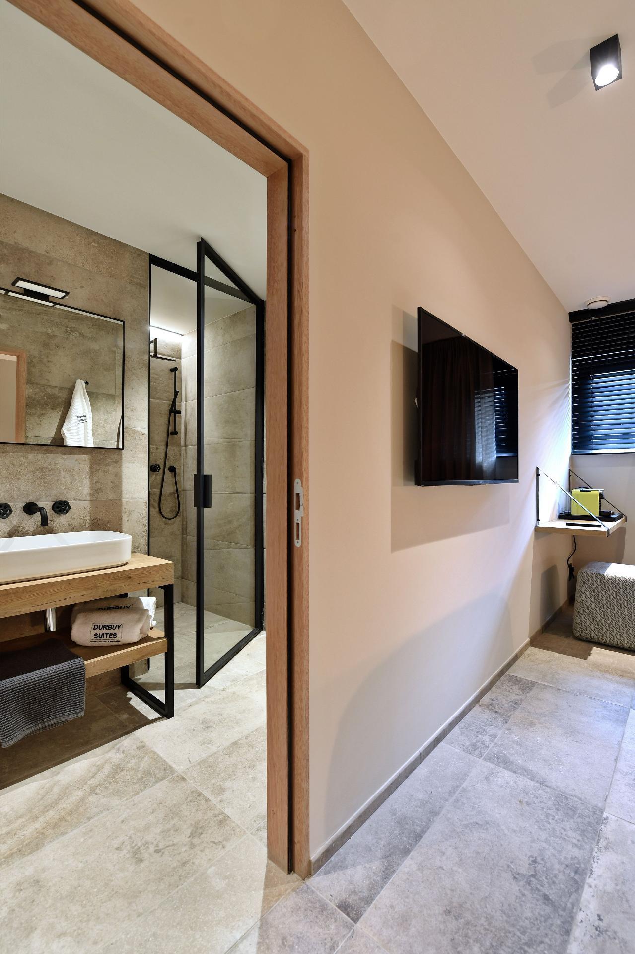 Step into the world of luxury and comfort at Durbuy Suites. The inside of these accommodations exudes an atmosphere of elegance and sophistication. The spacious suites are stylishly decorated with modern furniture and warm colours, creating an inviting ambience. Guests are pampered with high-quality amenities, including plush king-size beds, a fully equipped kitchen and a chic seating area with a flat-screen TV. The large windows let in abundant natural light and offer stunning views of the surrounding nature or the charming town of Durbuy. The bathrooms are an oasis of calm, with glass shower cubicles, marble sinks and soft towels. Some suites even feature a private balcony or terrace, perfect for a leisurely breakfast in the fresh air. Whether guests come for a romantic getaway, a family holiday or a weekend away with friends, the inside of Durbuy Suites provides the ideal setting for an unforgettable stay.