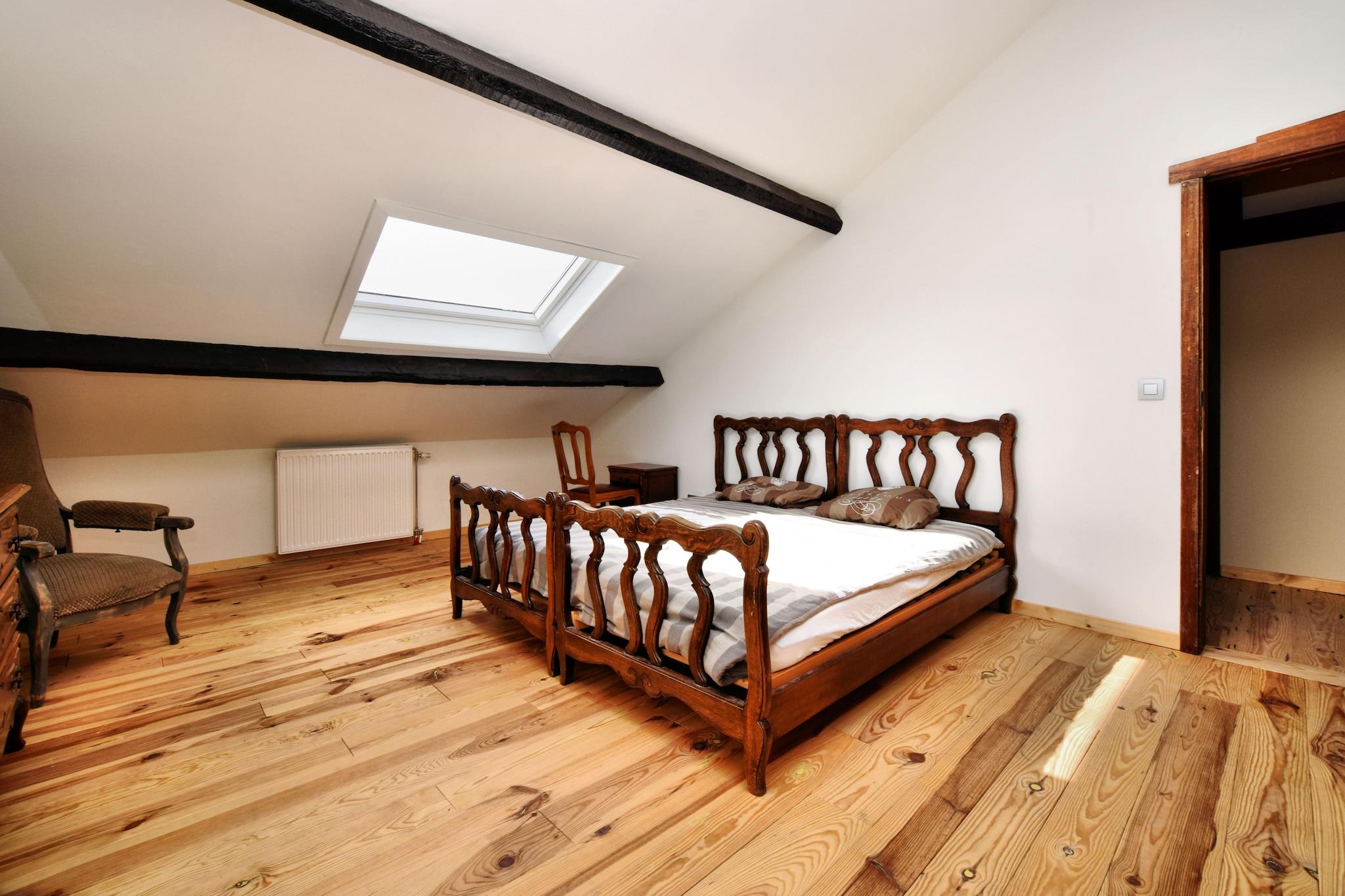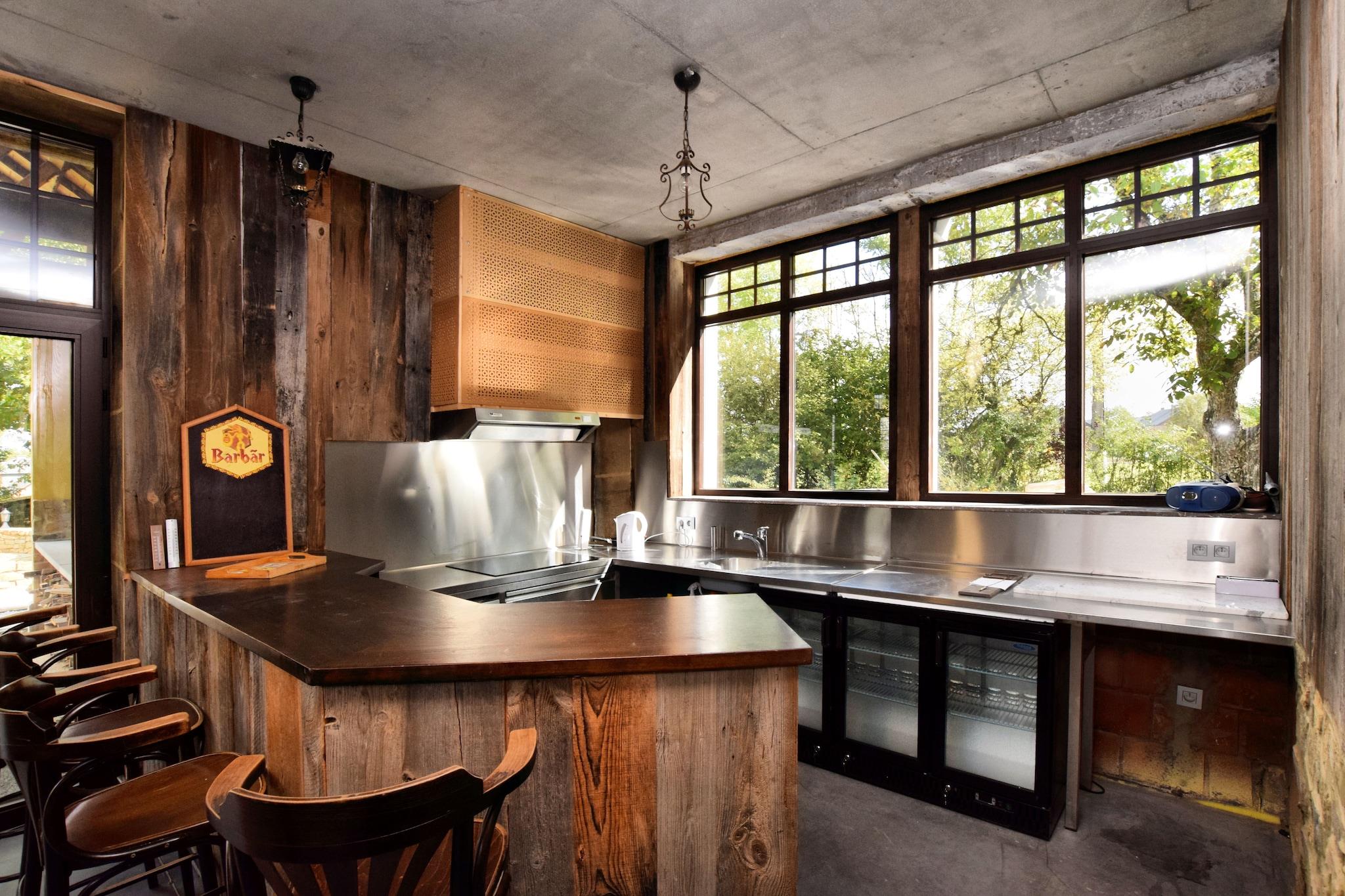 Denne rummelige villa i Érezée Ardennes er ideel til familier eller grupper, der søger en afslappende ferie i hjertet af det belgiske landskab. Kun en kort køretur fra Durbuy og La Roche-en-Ardenne tilbyder ejendommen nem adgang til charmerende byer, naturskønne flodvandringer og kulturelle vartegn. Gæsterne kan udforske de middelalderlige gader i Durbuy, vandre rundt om La Roches feudale slot eller nyde panoramaudsigten ombord på Tramway Touristique de l'Aisne. Villaen har fem soveværelser fordelt på tre etager, inklusive et luksuriøst afslapningsområde med boblebad, dampbruser, infrarød sauna og et tyrkisk dampbad. To køkkener, en hyggelig opholds- og spisestue med pejs og en rekreationshal med billard, bordtennis og bordfodbold sikrer komfort og underholdning. Udendørs kan gæsterne nyde en overdækket terrasse, have med grill, boulebane og privat parkering. En vaskemaskine, tørretumbler og børneseng tilføjer bekvemmelighed for familier.