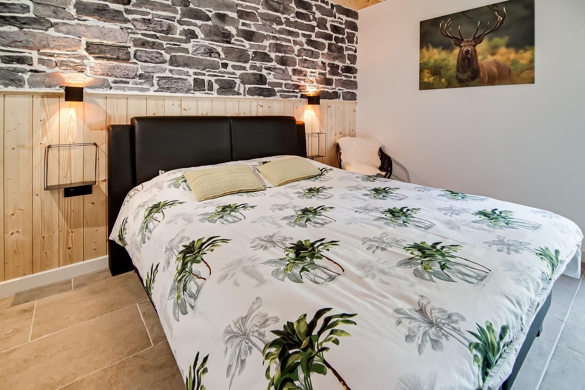 Dette stilfulde, kæledyrsvenlige sommerhus i Érezée tilbyder en rolig oase for par eller små familier. Kun 20 meter fra skoven og 3 km fra Ourthe-floden er det perfekt for naturelskere og friluftsentusiaster. Gæsterne kan udforske den middelalderlige charme i Durbuy, verdens mindste by, eller besøge Hottons berømte huler og det interaktive Rivéo Akvarium. For vandreture og panoramaudsigt er den keltiske rute i Berismenil et must-see. Ejendommen har to soveværelser med eget badeværelse, en hyggelig stue med varmepumpe og digital-tv samt et fuldt udstyret åbent køkken med keramisk kogeplade, grill-ovn og opvaskemaskine. Gulvvarme sikrer komfort året rundt, mens den private sauna og spabad tilbyder afslapning efter en dag med eventyr. Udendørs kan du nyde en indhegnet have med terrasse, grill, liggestole, trampolin og legeredskaber. En vaskemaskine, ladestander til elbiler og overvågningskamera giver ekstra komfort og sikkerhed. Nærliggende spisemuligheder inkluderer La Brasserie du Ravel med belgisk-fransk køkken, La Carretta med italienske favoritter og L'Affenage, kendt for sine raffinerede regionale retter.