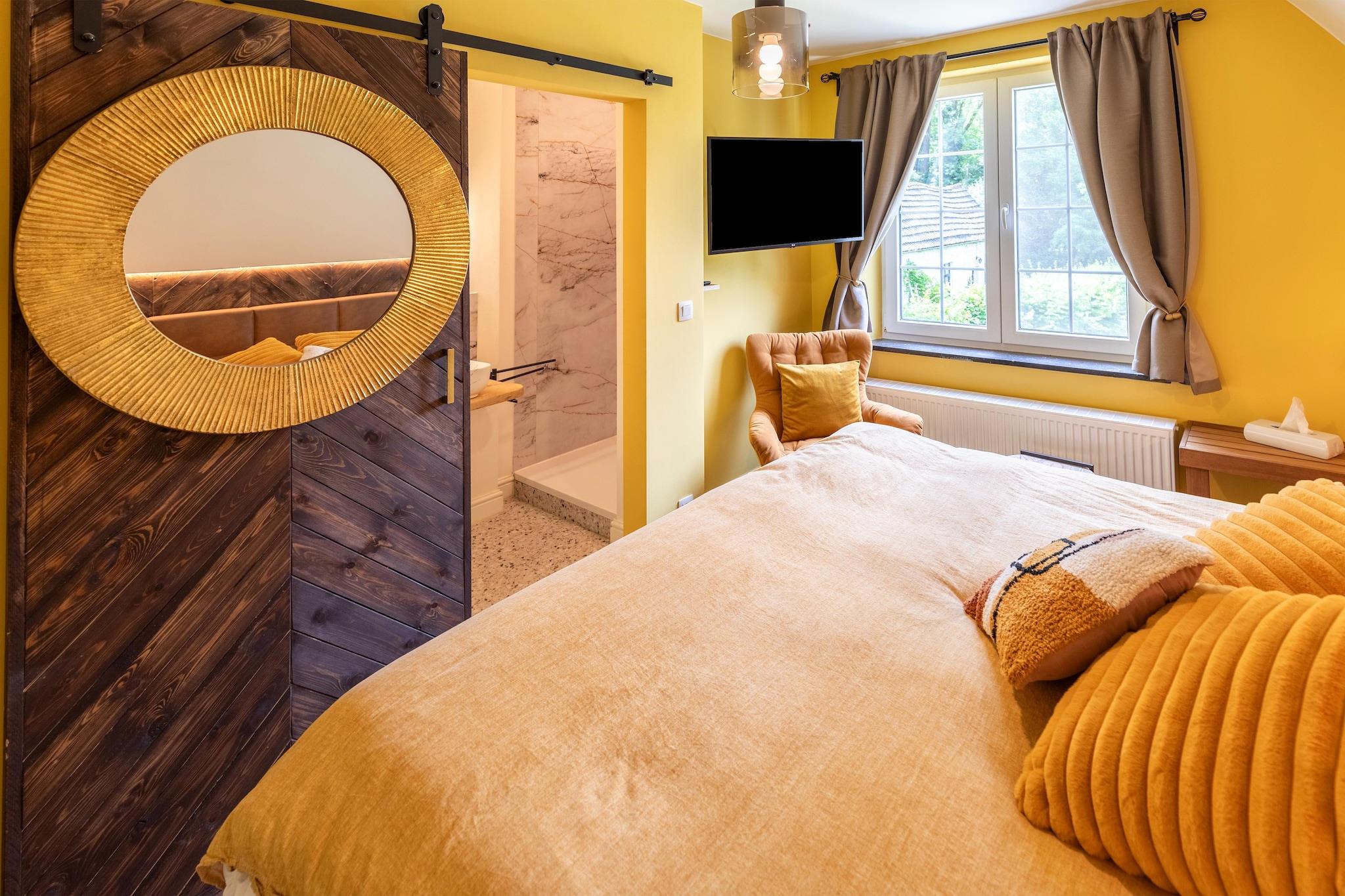 Velkommen til Manoir de Goyet, en eksklusiv landejendom til 15 gæster og 2 hunde, idyllisk beliggende mellem skov og dal i Faulx-les-Tombes. Via den udvendige trappe når du hovedindgangen på første sal, hvor entréen fører til det rummelige, fuldt udstyrede køkken med kogeø, to ovne, opvaskemaskine, kølerum og al komfort til udsøgte middage. Ved siden af ligger spisestuen med stort bord og to indbydende opholdsområder: et med komfortable siddepladser, TV og komfur, og et med bar, kaffehjørne og trådløst lydsystem. På anden sal finder du tre soveværelser, hver med dobbeltseng, TV og eget badeværelse (bruser, håndvask og toilet), samt et separat badeværelse og toilet til de to dobbeltværelser på tredje sal. I stueetagen er der det sjette soveværelse med dobbeltseng, dobbelt hems og enkelt hems, et eget badeværelse og et rummeligt opholdsrum med opholdsområde, streamingtjeneste, billard og PlayStation – perfekt til hyggelige aftener sammen. Udenfor kan du nyde en usædvanlig stor privat have med opvarmet swimmingpool, jacuzzi, poolhus med bruser og toilet samt en autentisk finsk grillhytte (Kota) til stemningsfulde middage i enhver sæson. Den store bane er ideel til fodbold eller basketball, og der er rigelig parkering på ejendommen. For dem, der ønsker at udforske omgivelserne aktivt, kan der lejes fire el-mountainbikes (EURO50 pr. dag pr. cykel). Her kombinerer du luksus, plads og privatliv med afslapning og sjov for alle aldre. Faulx-les-Tombes ligger i hjertet af en smuk, grøn region, hvor fred og natur er i centrum. Kun 10 km væk kan du opdage de imponerende Goyet-huler, der er kendt for deres forhistoriske opdagelser. 18 km væk ligger den imponerende Namur-citadell med en betagende udsigt over floderne Meuse og Sambre, perfekt at kombinere med en charmerende byvandring. Familier vil nyde Chevetognes provinsdomæne med legepladser og vandrestier, mens aktive gæster kan klatre i Marche-les-Dames-klipperne eller udforske Molignée-dalen på togcykel via Les Draisines de la Molignée. Øl-elskere kan besøge Brasserie du Bocq. Talrige vandre- og cykelruter starter også direkte fra ejendommen, ideelle til at kombinere natur og afslapning. Fester og drikkeselskaber af enhver art er ikke tilladt i villaen. Hvis gæsterne ikke overholder disse regler, vil ejeren opkræve dem omkostningerne forbundet med det samme.