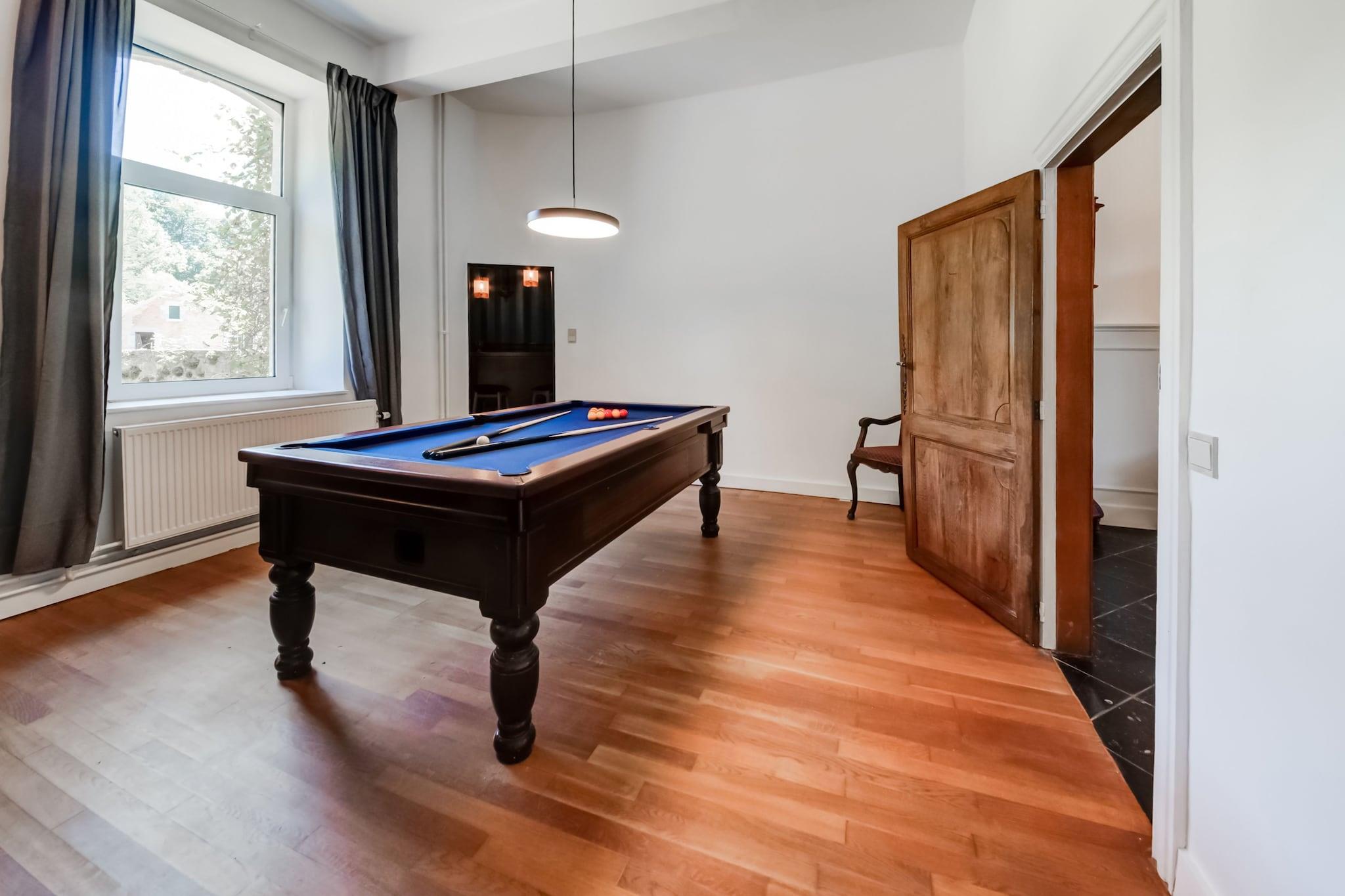 Stueetage: (Indgang , Stue(sofahjørne), sofastue(Fjernsyn, sofahjørne), sofastue(sofahjørne), spisestue(spisebord), Køkken(komfur, espressomaskine, ovn, 2x opvaskemaskine , køleskab, køle-fryseskab), Arbejdsværelse(spisebord), vaskerum (vaskemaskine, strygejern), legeværelse(Fjernsyn), opholdsrum(biljard), opholdsrum(biljard)) På 1. etage: (soveværelse(dobbeltseng), soveværelse(dobbeltseng, dobbeltseng), soveværelse(dobbeltseng), soveværelse(dobbeltseng), soveværelse(dobbeltseng), soveværelse(enkeltseng, 3-etage-køjeseng, 3-etage-køjeseng, kaffemaskine), badeværelse(dobbeltseng), badeværelse(badekar, håndvask), badeværelse(bruser, håndvask)) På 2. etage: (soveværelse(dobbeltseng), soveværelse(dobbeltseng), soveværelse(dobbeltseng), soveværelse(dobbeltseng, dobbeltseng), badeværelse(bruser, håndvask), badeværelse(bruser, håndvask), badeværelse(badekar med bruser, bruser, håndvask), badeværelse(bruser, håndvask), badeværelse(bruser, håndvask)) garage, hottub, terrasse, have, parkering, dam, tennisbane, kravlegård