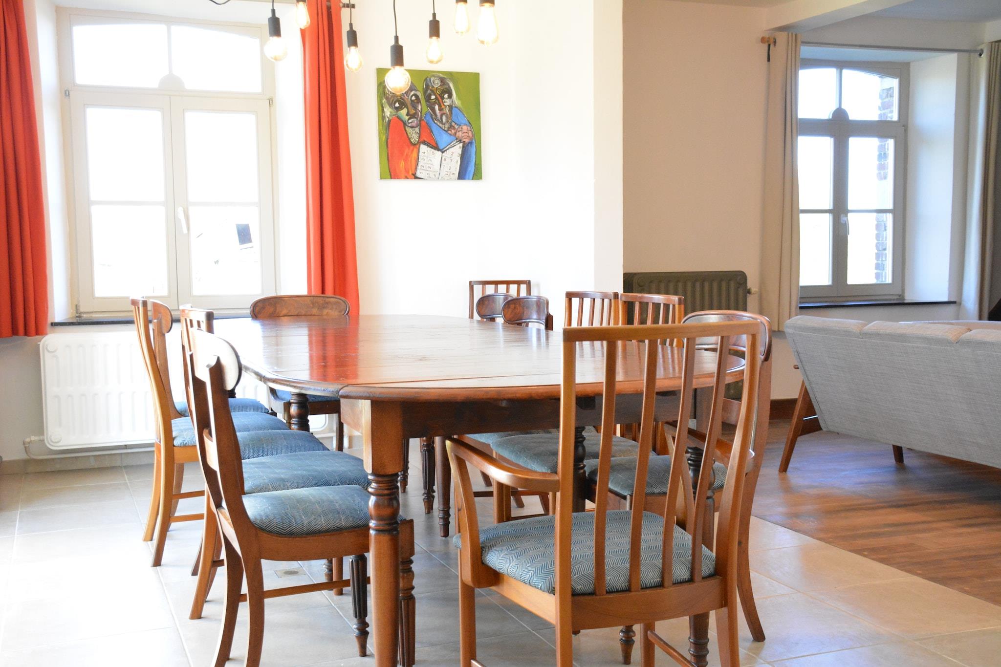 Set mod fredfyldte hvide interiører og rustikke stenydre, tilbyder dette elegante feriehus i Gedinne en stilfuld og fredelig flugt. Med 4 rummelige soveværelser byder den velkommen til op til 12 gæster, hvilket gør den ideel til familier eller en gruppe venner. Efter en dag med udendørs eventyr kan du slappe af i den private sauna eller nyde en afslappende stund på den solrige terrasse. Beliggende kun 500 m fra skoven og 3 km fra byen Rienne, er vandreture i naturen og lokal udforskning lige uden for døren. Bymidten af Gedinne, som ligger 7 km væk, byder på flere muligheder for spisning og shopping under dit ophold. Huset er designet til komfort og forbindelse og har en hyggelig stue med brændeovn, et moderne åbent køkken til fælles måltider og en stor fælles have til at nyde Ardennernes landskab. En barneseng, høj stol, pusleunderlag og vaskemaskine gør dette til et børnevenligt og praktisk rum. Med parkering på stedet kombinerer dette hjem stil, natur og funktion for en uforglemmelig ferie.