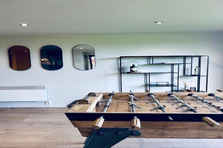 Stueetage: (Stue(Fjernsyn, pejs), spisestue, Køkken(komfur, ovn, køle-fryseskab), toilet) På 1. etage: (soveværelse(dobbeltseng), soveværelse(dobbeltseng), soveværelse(2x enkeltseng), badeværelse(bruser, håndvask, toilet), badeværelse(badekar, håndvask, toilet)) På 2. etage: (soveværelse(3x enkeltseng)) Poolhus: (Stue(dobbeltsovesofa, Fjernsyn, pejs, DVD-afspiller, bar(med fadøl)), Køkken, soveværelse(via forholdsvis stejle trapper)(dobbeltseng, varme(elektrisk)), badeværelse(bruser, håndvask, toilet), åbent rum(enkeltseng), biljard) kaffemaskine, mikrobølgeovn, opvaskemaskine , Bubble bath(udendørs), hottub, infrarød sauna, infrarød sauna, sauna, varme, terrasse, terrasse(overdækket), have, have, havemøbler, havemøbler, solstole, grill, parkering, liggestole, swimmingpool(privat, 9 x 4 m., opened from May upto and including Sep), bordfodbold, barneseng, barnestol, Alarm, Surveillance camera