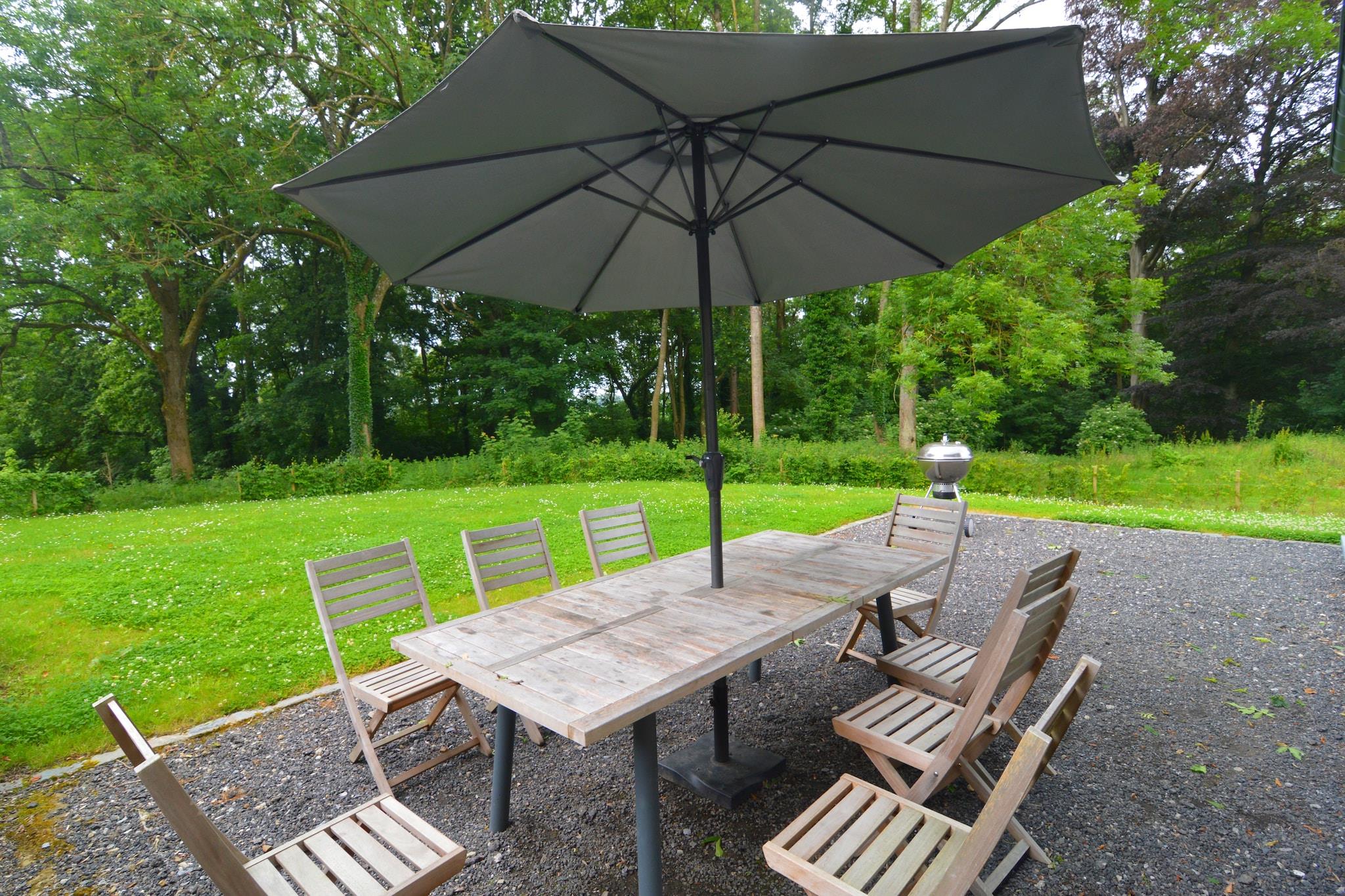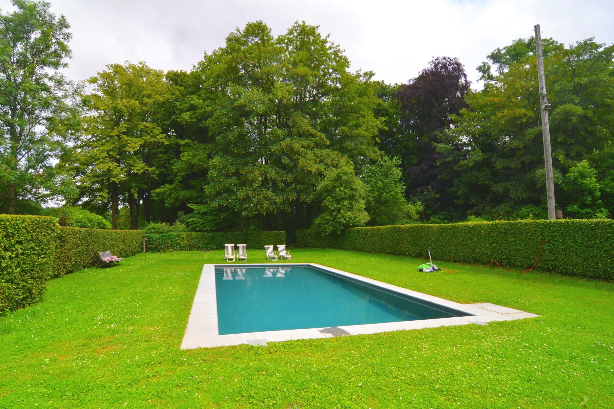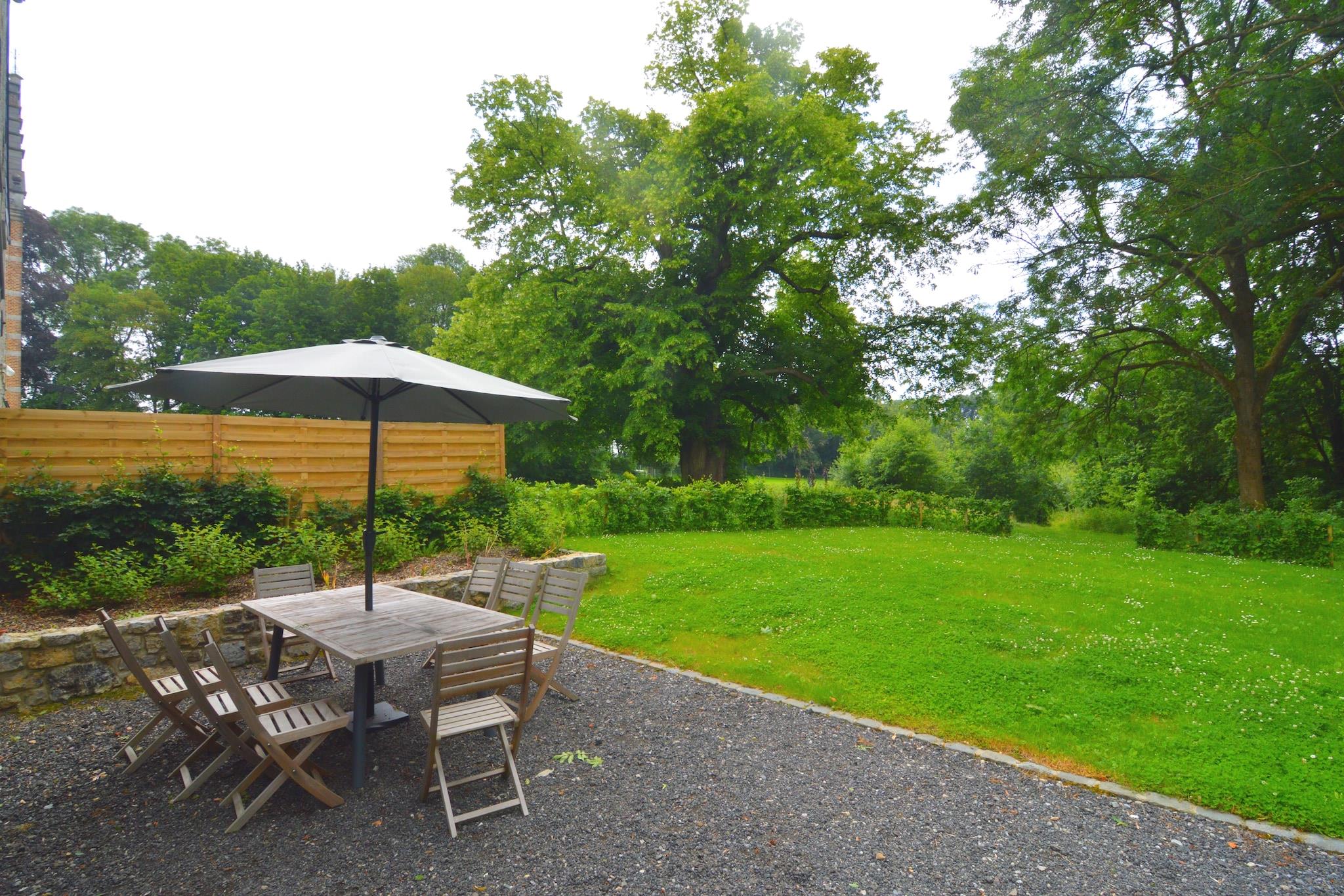 Dette feriehus med 4 soveværelser ligger på smukt slotsområde i Gesves og tilbyder et roligt tilflugtssted for op til 9 gæster. Med en fælles swimmingpool, græsplæne til solbadning, tennisbane og sauna er det perfekt til familier eller grupper, der søger en fredelig flugt fra Ardennerne. Boligen har centralvarme, en hyggelig stue med udsigt over skoven og et fuldt udstyret køkken, der åbner ud til spisepladsen. Træd udenfor for at grille på terrassen, slappe af i den fælles have eller nippe til vin, mens børn leger i nærheden. Det omkringliggende landskab er ideelt for lange gåture og naturelskere. Huset ligger nær landsbyerne Faulx-Les-Tombes, Haltinne, Mozet og Sorée, 6 km fra supermarkeder og 10 km fra byens centrum. Den nærmeste togstation ligger 10 km væk. Bemærk venligst: Denne ejendom er bedst egnet til familier. Ungdomsgrupper og fester er ikke tilladt.