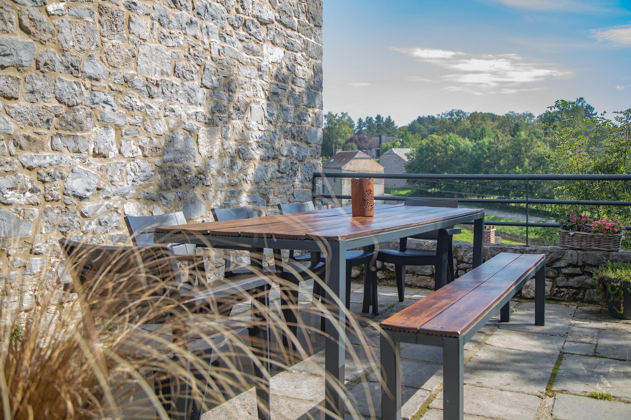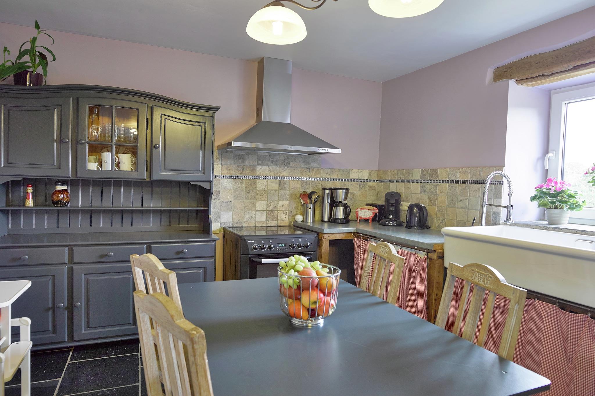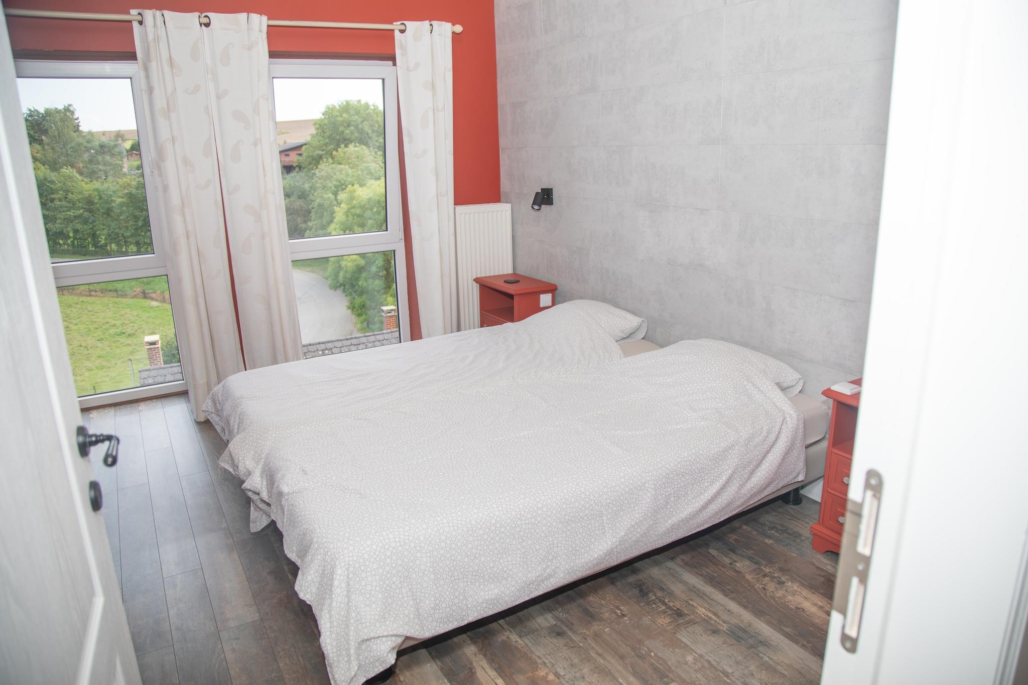 Beliggende i den fredelige landsby Gimnée (Doische) tilbyder dette charmerende 4-værelses sommerhus et hyggeligt tilflugtssted for op til 9 gæster. Beliggende i nærheden af Namur og den fortryllende Ardennerne-region, er det ideelt for familier og grupper, der søger en naturfyldt ferie. Nyd gåture gennem den nærliggende bymidte (kun 100 m væk) eller forkæl dig selv med lokale smagsoplevelser på restauranter og supermarkeder kun 3 km fra dit dørtrin. Sommerhuset, bygget i 2008, emmer af varme med centralvarme og en indbydende stemning. Det åbne køkken inviterer til fælles madlavningsstunder med sine kære, mens den private indhegnede have er perfekt til udendørs spisning, grill og solrig afslapning. Børn vil elske legeredskaberne, og forældrene vil sætte pris på de 2 høje stole og børnesenge. Uanset om du vandrer, sejler i kano, står på ski eller cykler gennem Ardennerne, tilbyder dette kæledyrsvenlige hjem komfort og charme til at slappe af efter hvert eventyr. To kæledyr er velkomne mod et mindre gebyr, hvilket sikrer, at intet familiemedlem efterlades.