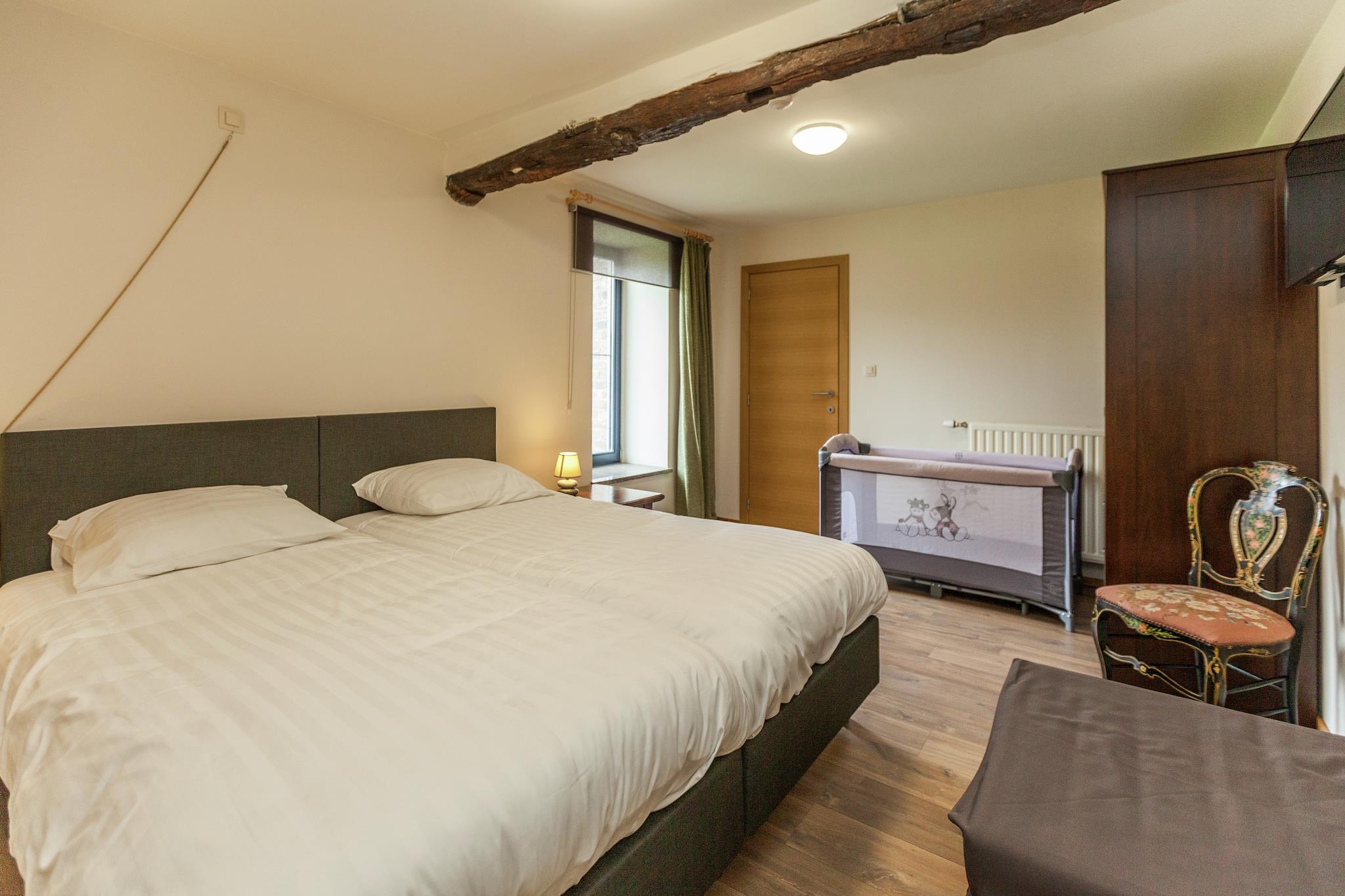 Beliggende i den fredelige landsby Glabbeek, tilbyder dette moderne 4-værelses feriehus et komfortabelt og veludstyret ophold for op til 8 gæster. Ideel til familier eller små grupper, huset har en indhegnet have, privat terrasse og børnevenlige faciliteter. Stueetagen indeholder et fuldt udstyret køkken med kaffemaskine, ovn, mikroovn, opvaskemaskine og køleskab med fryser. Stuen/spisestuen er indrettet med digital-tv, og der er spisekammer med vaskemaskine og tørretumbler. Et separat toilet er også tilgængeligt på dette niveau. Ovenpå har hvert af de 4 soveværelser 2 enkeltsenge, et tv og et privat badeværelse med bruser, håndvask og toilet, hvilket sikrer privatliv og komfort for alle gæster. Nyd måltider udendørs i den møblerede have, og lad børnene lege sikkert, mens du slapper af. Ekstra: – Gratis WiFi – Parkering på stedet – Børneseng og højstol inkluderet – Kæledyrsvenlig (maks. 1 kæledyr) – Restauranter inden for 1,2 km