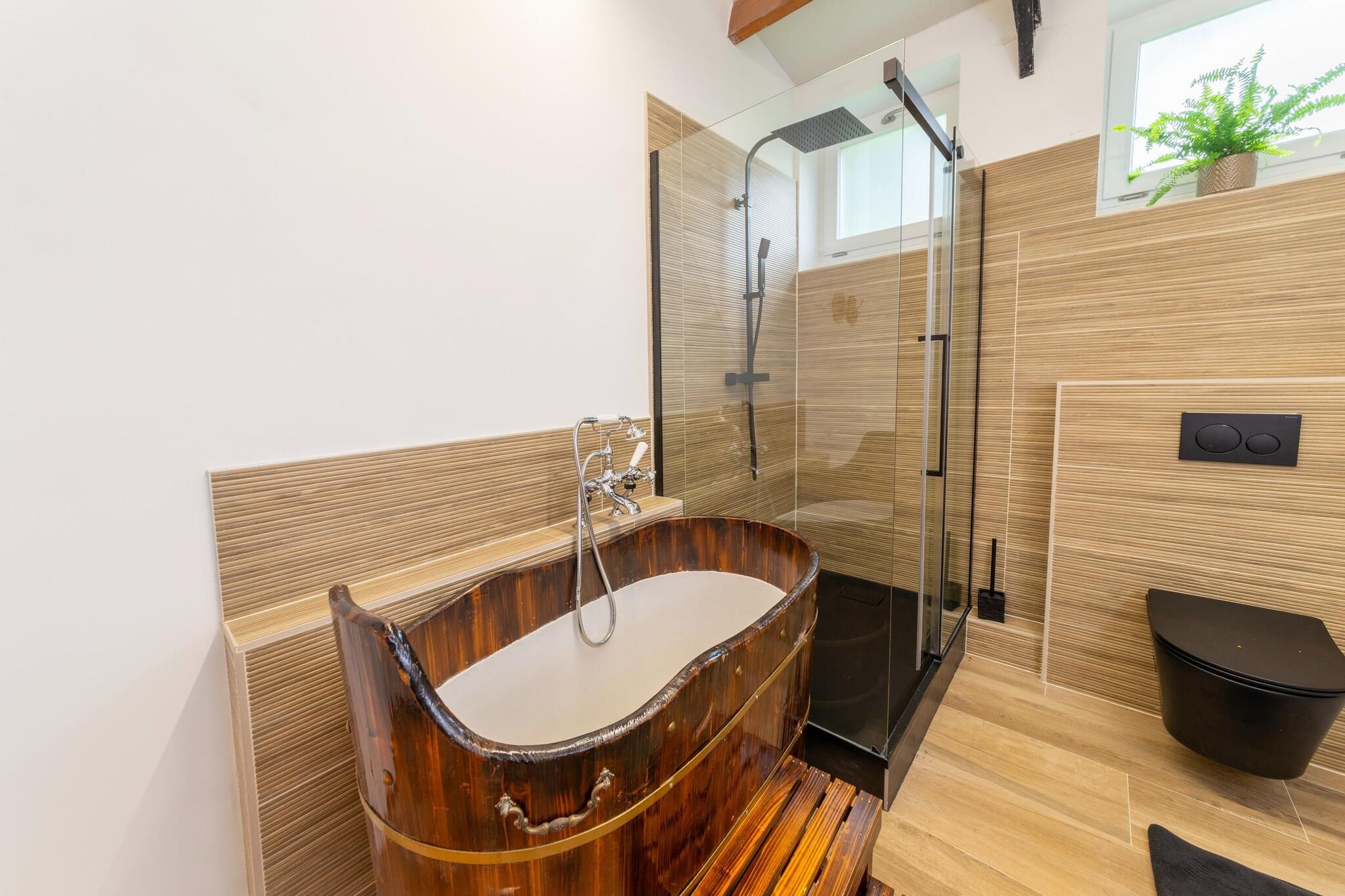 Velkommen til dit luksuriøse landlige tilflugtssted i Goesnes, hvor komfort og afslapning venter. Dette feriehus med 4 soveværelser er ideelt til familier på op til 8 gæster og har en privat indendørs swimmingpool, en beroligende sauna og et boblende spabad, perfekt til afslapning efter en dag med udforskning. Huset ligger i hjertet af Namur-provinsen og er omgivet af bølgende marker, skove og maleriske landsbyer, der tilbyder uendelige muligheder for vandreture og gåture i naturen. Det rummelige interiør inkluderer en stilfuld stue, et fuldt udstyret køkken med moderne apparater og en spiseplads, der er perfekt til fælles måltider. Der er også en vaskemaskine til rådighed for ekstra bekvemmelighed. Udendørs kan du nyde den smukke terrasse med panoramaudsigt, dejlige damme og en grillplads. Børnene vil elske bordtennisanlægget, og der er en børneseng og højstol til rådighed. Alle senge er redt ved ankomst, så du kan begynde at slappe af i det øjeblik, du ankommer. En rolig og stilfuld flugt i de belgiske Ardenner. Huset er let tilgængeligt og velegnet til ældre gæster.