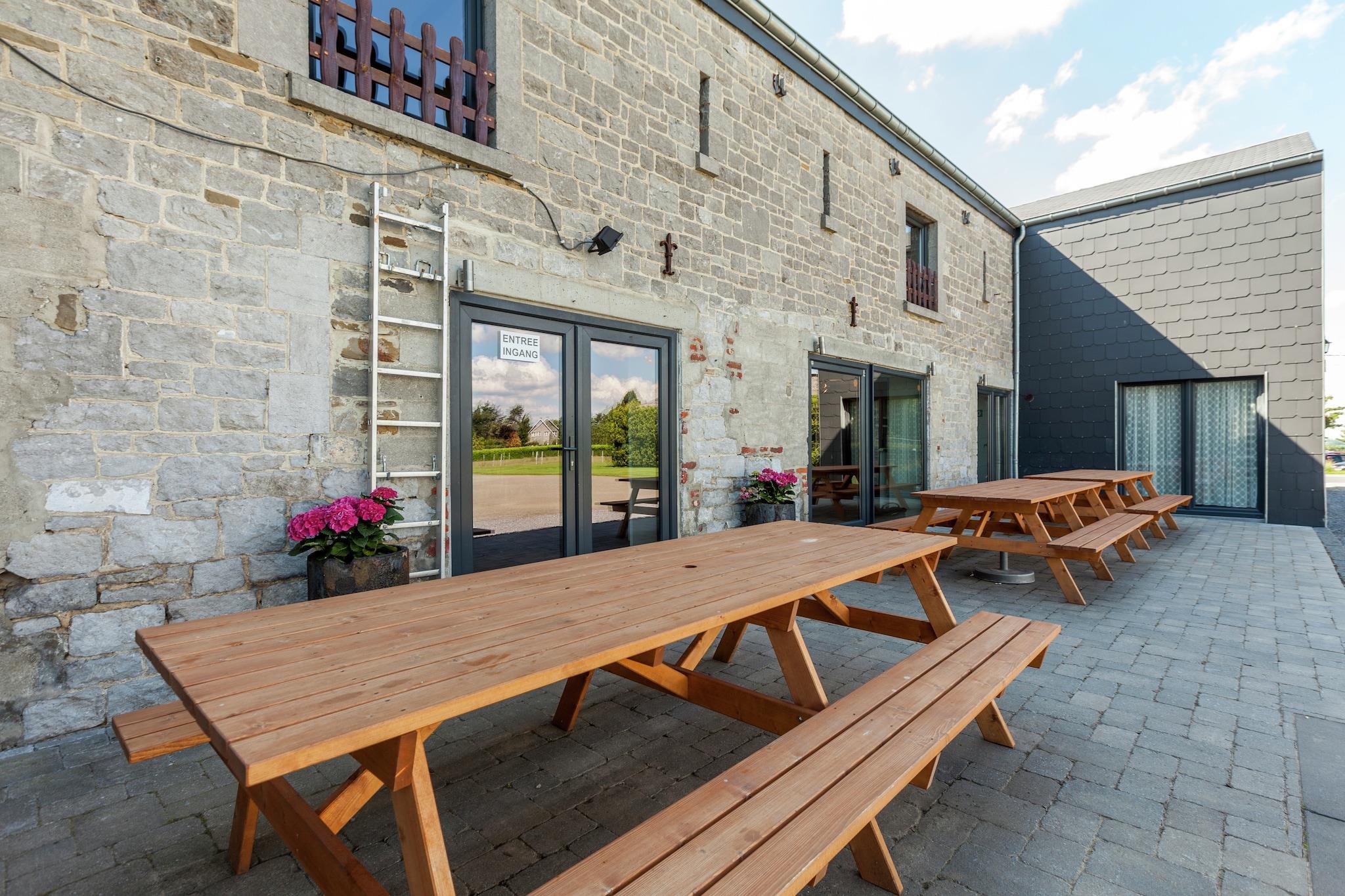 Dette overdådige feriehus med 10 soveværelser i Ouffet er ideelt til store grupper og huser komfortabelt op til 32 gæster. Med en privat sauna, billardrum og rummelig have er det perfekt til familiesammenkomster eller grupperejser. Huset indeholder en grill, legeredskaber, 2 børnesenge, 2 høje stole og rigelig parkering. En møbleret terrasse inviterer dig til at slappe af udendørs, mens børnene nyder gyngestativet og sandkassen. Boligen ligger kun 300 m fra den nærmeste købmand og 2 km fra byens centrum, hvor du finder butikker, restauranter og lokal charme. Kæledyr er velkomne, og WiFi er gratis. Af hensyn til roen udlejes boligen ikke til ungdomsgrupper, og fester er strengt forbudt. Uanset om du nyder en hyggelig aften indendørs eller udforsker Ardennernes landskab, tilbyder dette hjem komfort, plads og en varm velkomst året rundt.