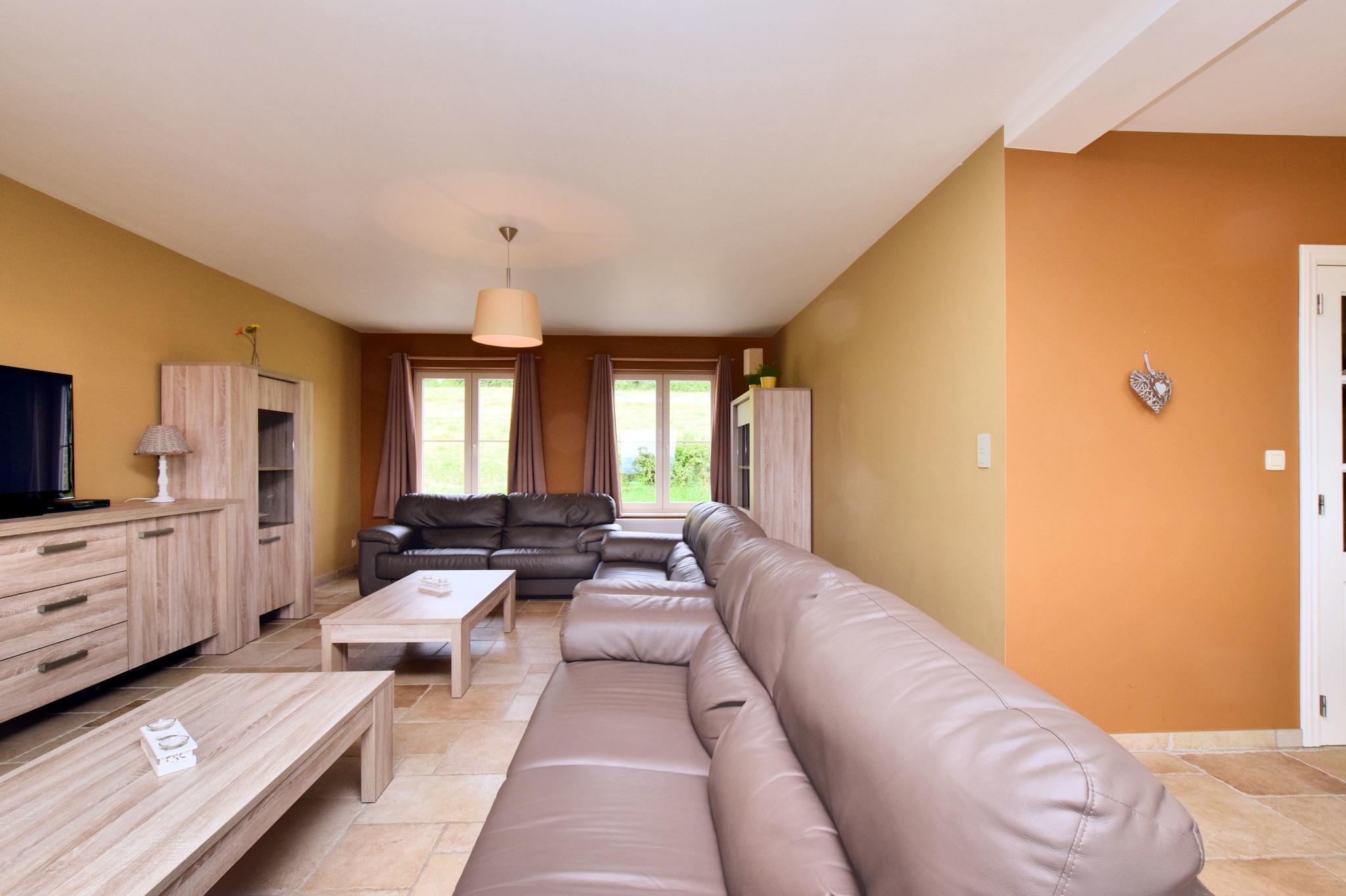Dette elegant designede 7-værelses feriehus i Hastière ligger over den naturskønne Meuse-dal og tilbyder et roligt og rummeligt tilflugtssted for op til 14 gæster. Perfekt til familier eller grupper, hjemmet har panoramaudsigt, en møbleret terrasse og et lyst opholdsrum i åbent plan - ideel til at slappe af efter en dag med udforskning af Ardennerne. Indenfor indeholder boligen et fuldt udstyret køkken, to badeværelser og et legerum med bordtennis og bordfodbold. Havemøblerne inviterer dig til at nyde måltider udendørs, mens to børnesenge gør det familievenligt. Boligen er også udstyret med WiFi, varme og rigelig parkering. Uanset om du nipper til kaffe med udsigt eller planlægger en gruppemiddag, forener dette hjem komfort med charme. Huset ligger kun 2 km fra butikker og restauranter og 17 km fra Dinant, tæt på kajaksejlads, vandreture, mountainbiking og langrend. Besøg lørdagsmarkedet i Hastière, udforsk citadellet Dinant, eller kryds ind i Frankrig kun 10 km væk. Bruxelles South Charleroi Lufthavn ligger 57 km derfra, hvilket gør dette til et godt forbundet og naturskønt tilflugtssted.