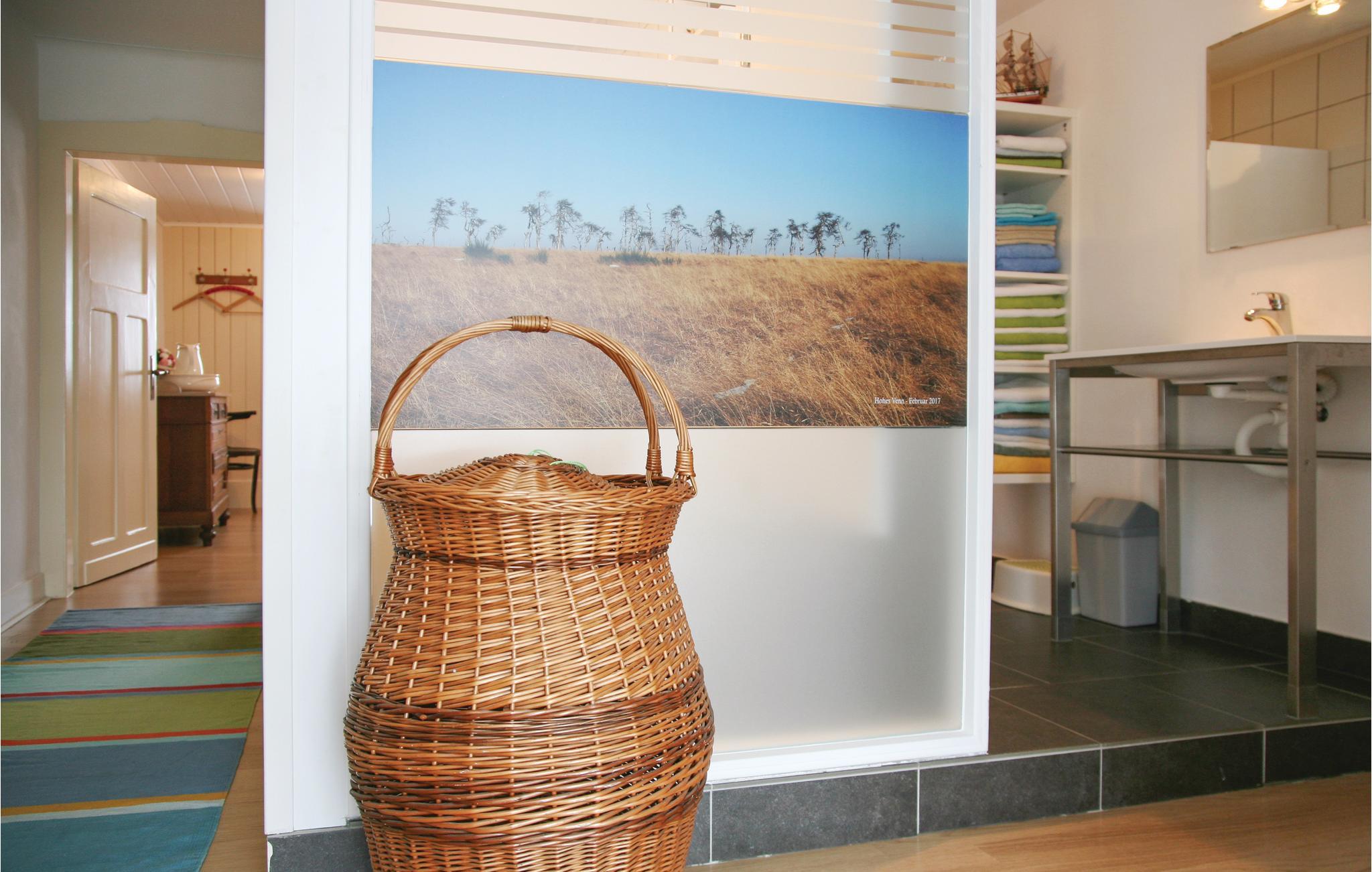 Dette feriehus ligger dejligt roligt, til en ferie med familie eller venner, som kan slå sig løs på den 2.000 m² store grund. Feriehuset har sin egen private indgang, en dejlig vinterhave gennemstrømmet af lys og en skøn udsigt over terrassen og haven. Vinterhaven er smukt indrettet med et siddehjørne og et klaver. I stuen står brændeovnen og spreder hygge og varme. I spisestuen står et tv.
