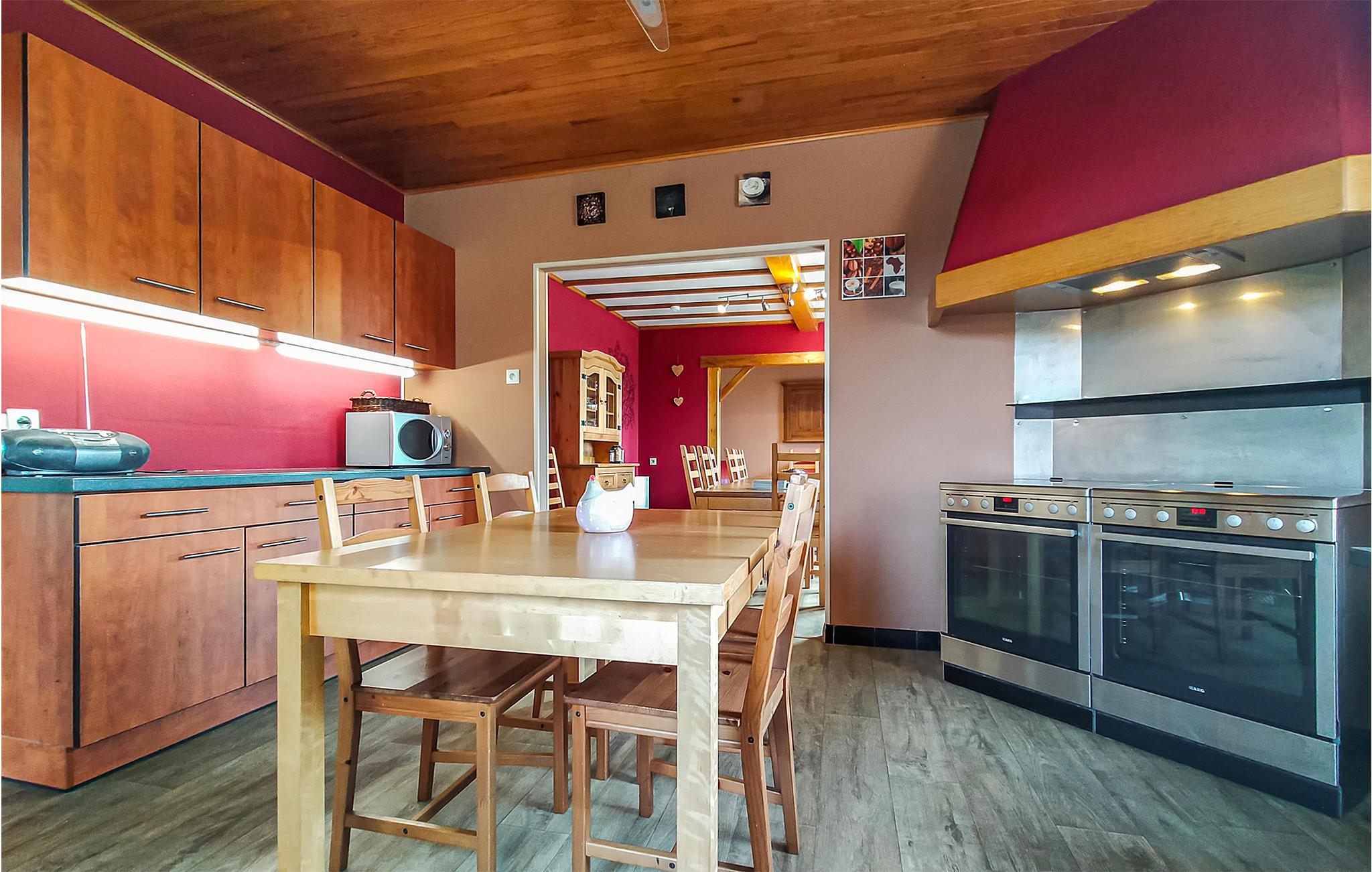 Her er I på ferie i de Høje Ardennere, i en landsby i nærheden af Houffalize. Køkkenet er åbent til den hyggelige spisestue med brændeovn. I stueetagen er der en stor stue med dejligt siddehjørne, tv og aktivitetsrum med bordtennis, billard og babylegetøj. Et soveværelse med tre enkeltsenge er lige ved siden af. Et af soveværelserne er indrettet som familieværelse med flere senge. Fra den lukkede have med behagelig terrasse har I en dejlig udsigt over Ardennernes bakker. Ikke langt herfra kan I vandre i Nisramont. Houffalize er kendt for mountainbike-verdensmesterskaberne, et valfartssted for sportscyklister. Inden for 25 km finder I La Roche med sin borg, grotterne af Hotton og La Chouffe-bryggeriet. Boligen er særligt oplagt for sportslige familier og grupper af venner.