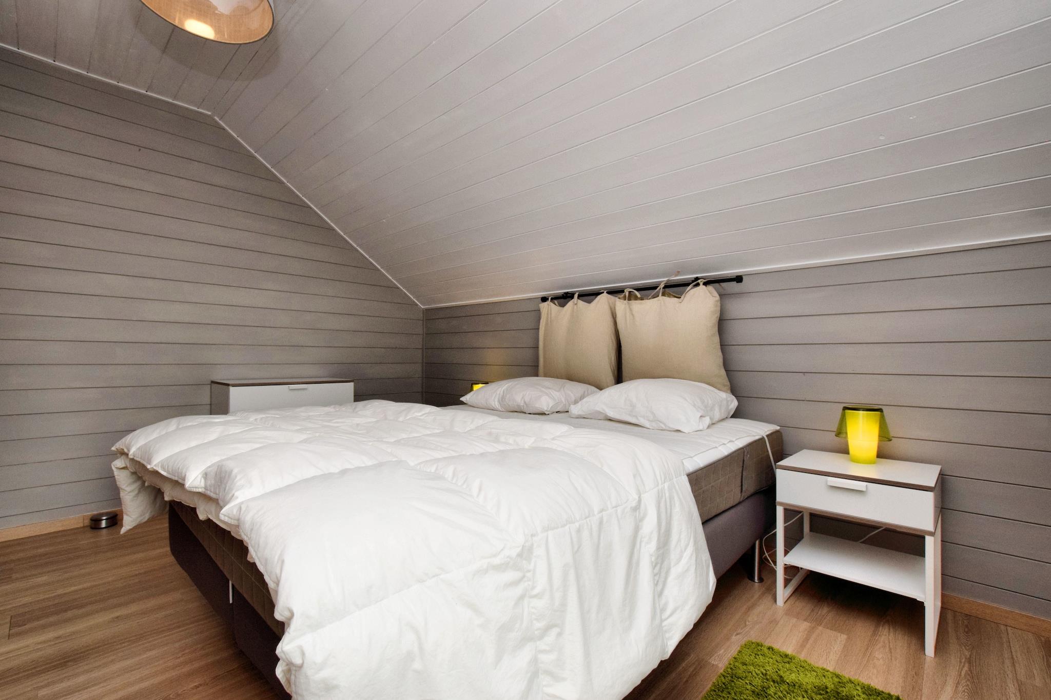 Stueetage: (Stue(Fjernsyn(kabel), spisebord, kakkelovn(træ), sofahjørne), Køkken(elkedel, komfur, ovn, mikrobølgeovn, opvaskemaskine ), badeværelse(bruser, håndvask, toilet), toilet) På 1. etage: (soveværelse(dobbeltseng(160 x 200 cm)), soveværelse(dobbeltseng(160 x 200 cm)), soveværelse(2x enkeltseng(90 x 200 cm)), soveværelse(2x enkeltseng(90 x 200 cm)), badeværelse(badekar, håndvask), toilet) sauna, patio, varme(central), terrasse, have, havemøbler