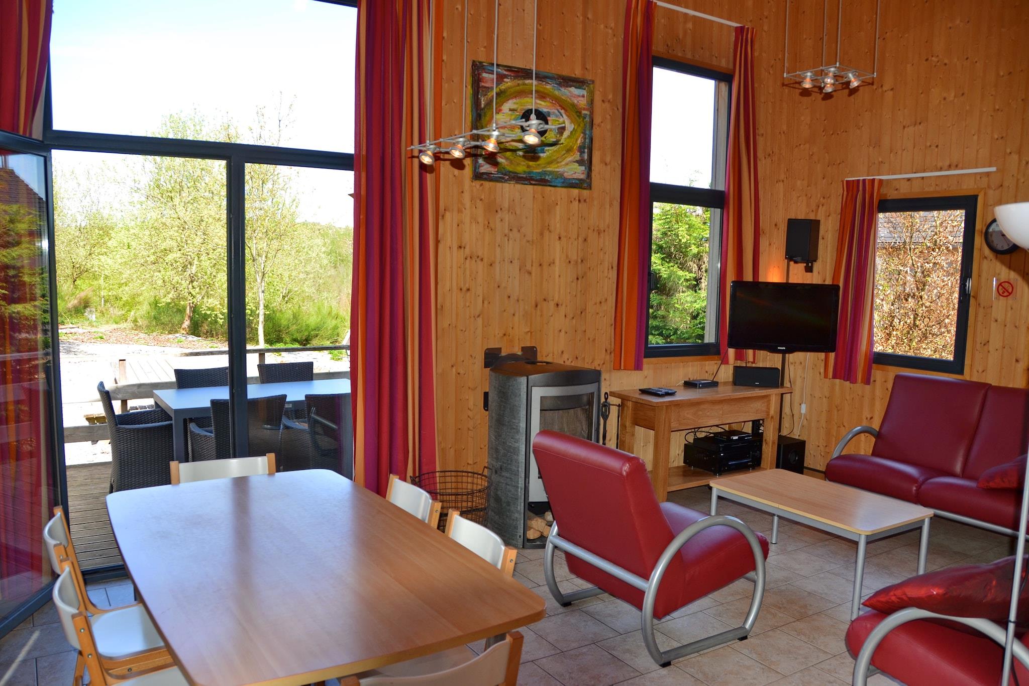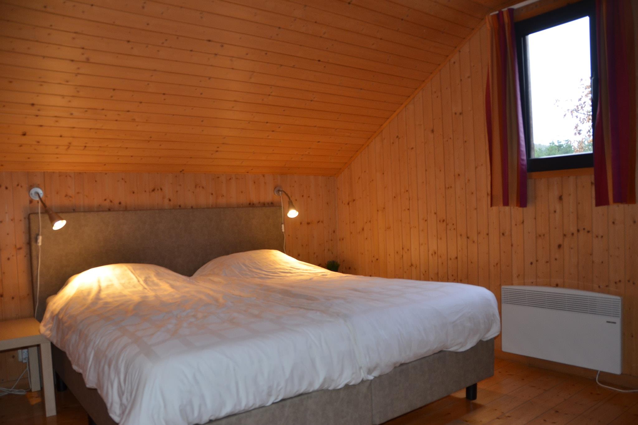 Les 'Jardins de l'Ourthe' ligger 1 km fra Houffalize centrum - en lille by i Ardennerne, der er berømt for sine mountainbike muligheder. Husene er omgivet af et naturreservat - et ideelt sted for vandrere. Byen byder på et stort udvalg af restauranter med lokale specialiteter og pubber, hvor man kan smage den lokale øl 'La Chouffe'. Huset har en stue (HD TV, DVD, brændeovn, wifi) med spiseplads, åbent udstyret køkken, franske døre til terrasse, et soveværelse, et badeværelse wit bad og et separat toilet. Trappe op til første sal med 2 soveværelser og sauna. Udstyr: gratis WIFI, digitalt tv, Hifi + mp3, sauna, møbleret terrasse, picnicbench, carport. Sengetøj: 2 doubler, 2 singler. Dyr ikke tilladt.