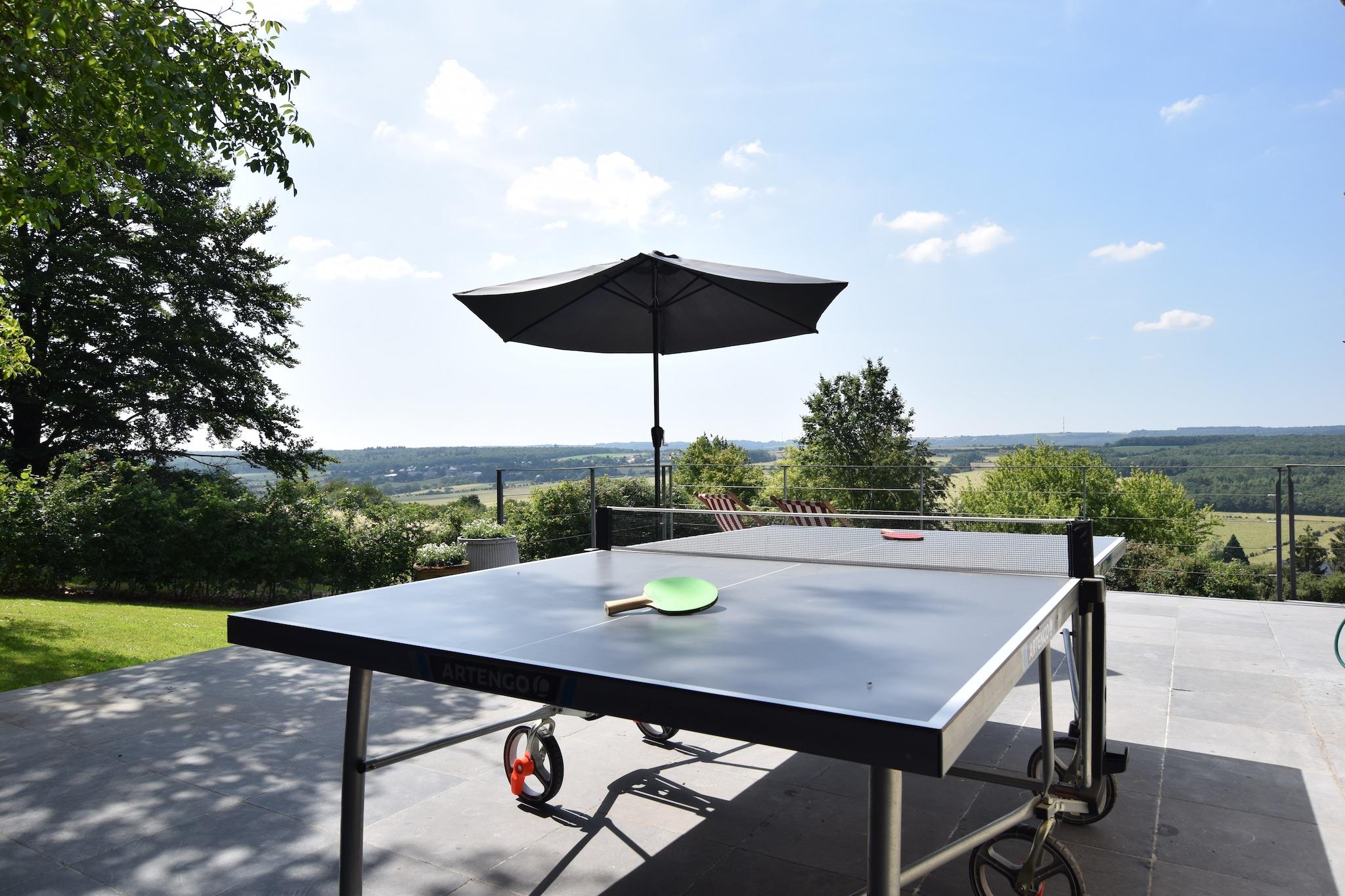 Stueetage: (åbent køkken(elkedel, brødrister, komfur(Komfur med fem kogeplader, gas), kaffemaskine(kaffetragt, kaffepude), mikrobølgeovn, opvaskemaskine , køle-fryseskab), stue / spisestue(dobbeltsovesofa(to enkeltdyner, 90 x 200 cm), Fjernsyn, spisebord, pejs, DVD-afspiller, stereoanlæg), toilet) På 1. etage: (soveværelse(enkeltseng(90 x 200 cm), enkeltseng(90 x 200 cm)), Soveværelse med badeværelse(enkeltseng(90 x 200 cm), enkeltseng(90 x 200 cm), badekar med bruser, 2x håndvask, toilet), Soveværelse med badeværelse(enkeltseng, enkeltseng(90 x 200 cm), bruser, håndvask), badeværelse(bruser, 2x håndvask), toilet) På 2. etage: (soveværelse(enkeltseng(90 x 200 cm), enkeltseng(90 x 200 cm), håndvask), legeværelse(Fjernsyn, stereoanlæg)) Kælderetage: terrasse, have(privat), havemøbler, grill, parkering, trampolin, petanquebane, bordtennisbord, barneseng, barnestol