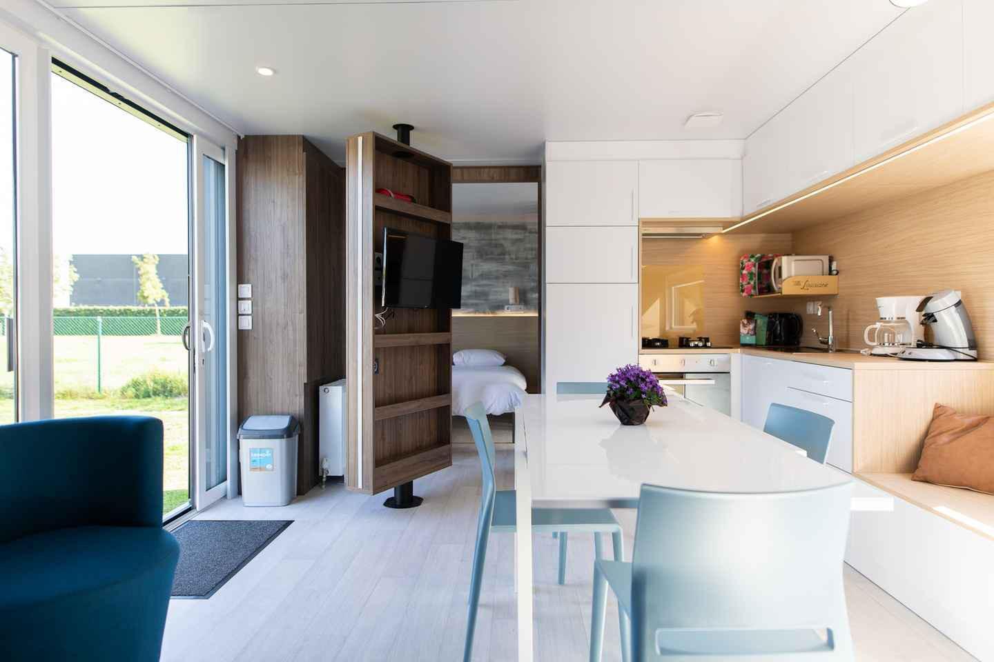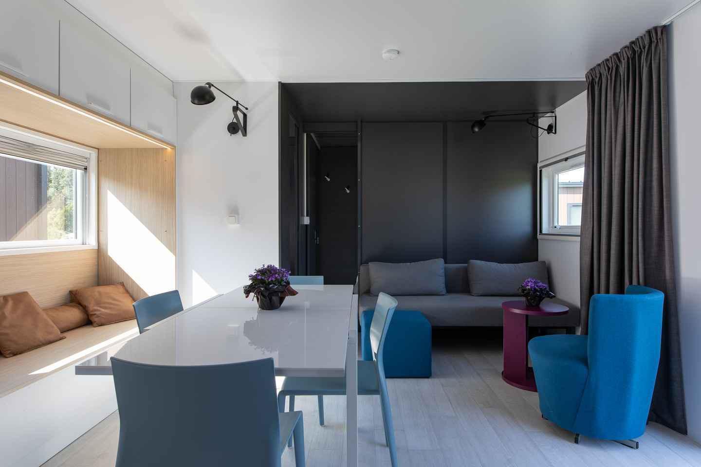 This spacious and modern accommodation is ideal for families or small groups and offers all the comfort for a relaxing stay. Inside, you can enjoy a stylishly furnished living space with a fully equipped kitchen, a cosy seating area and comfortable sleeping accommodations for six guests. Thanks to the smart design and contemporary interior, you will feel right at home here. The chalet has a private terrace where you can relax and enjoy the natural surroundings in complete peace..