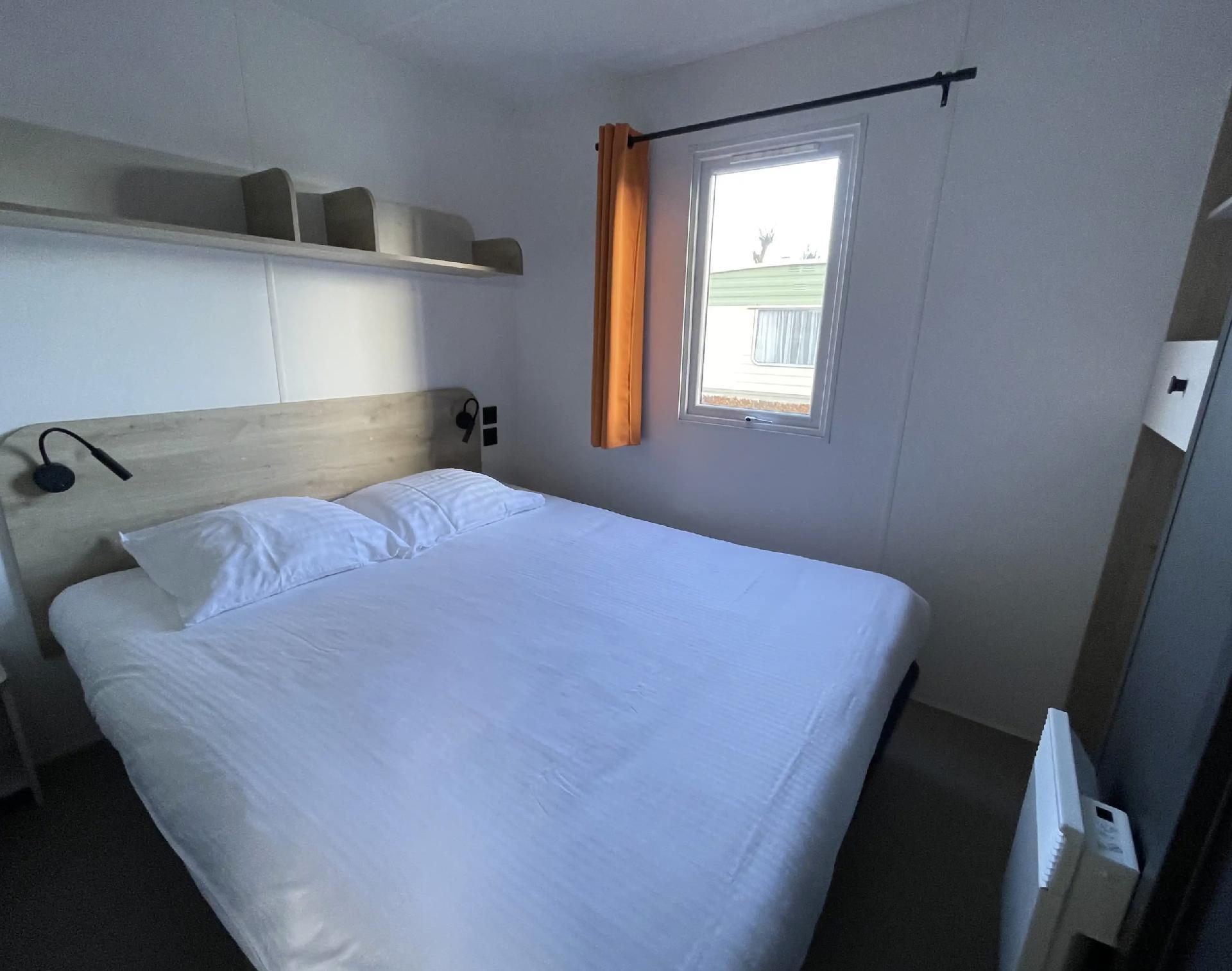 The Comfort Chalet for 4 people at Holiday Park Klein Strand offers a pleasant and practical base for a relaxing stay. The chalet has two bedrooms and is furnished with a cosy living area and an open kitchen that includes, among other things, a microwave. The bathroom is equipped with a shower, toilet and washbasin. Outside, you can enjoy a spacious terrace with garden furniture, located on a plot of at least 125 m²..