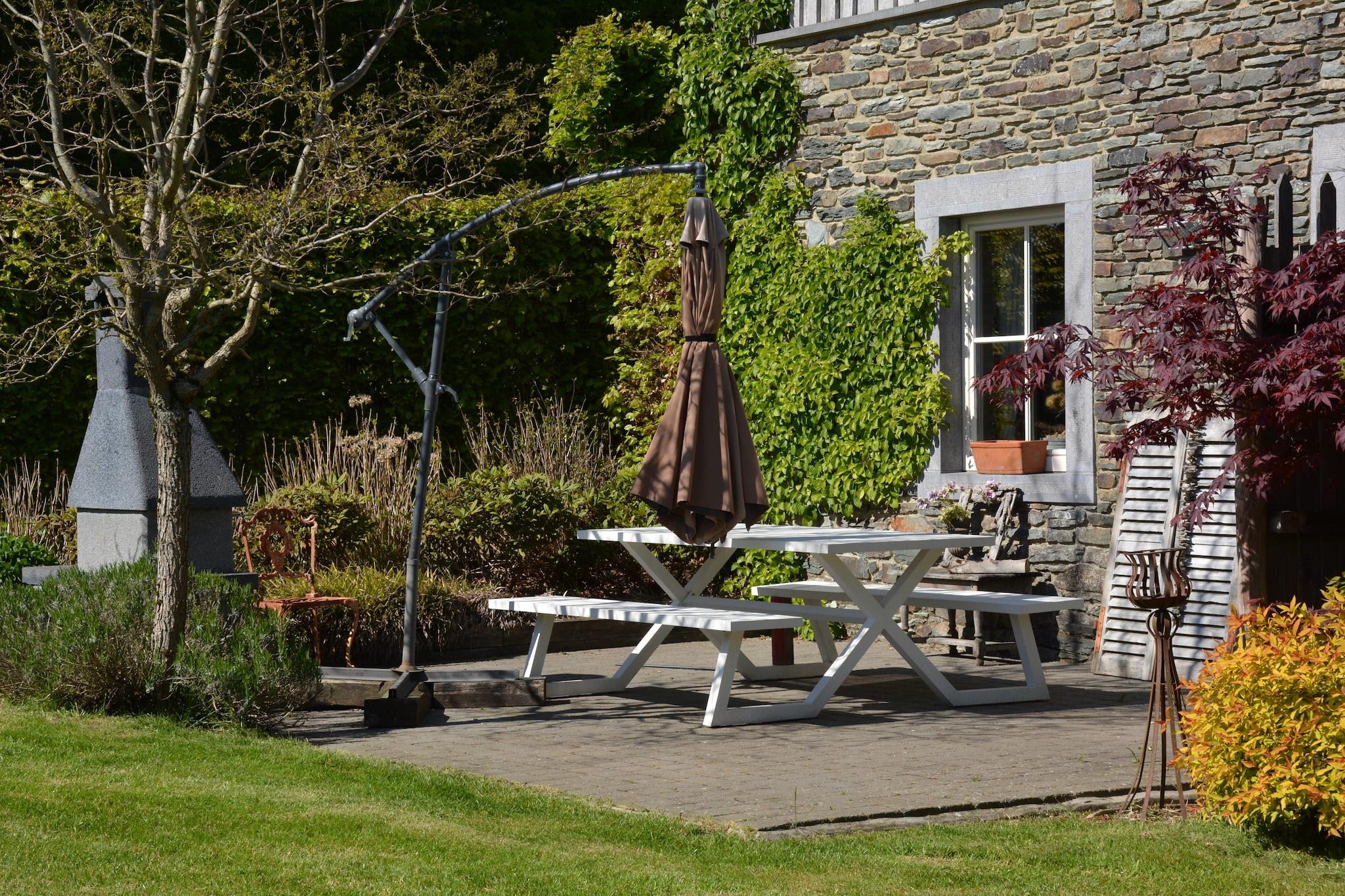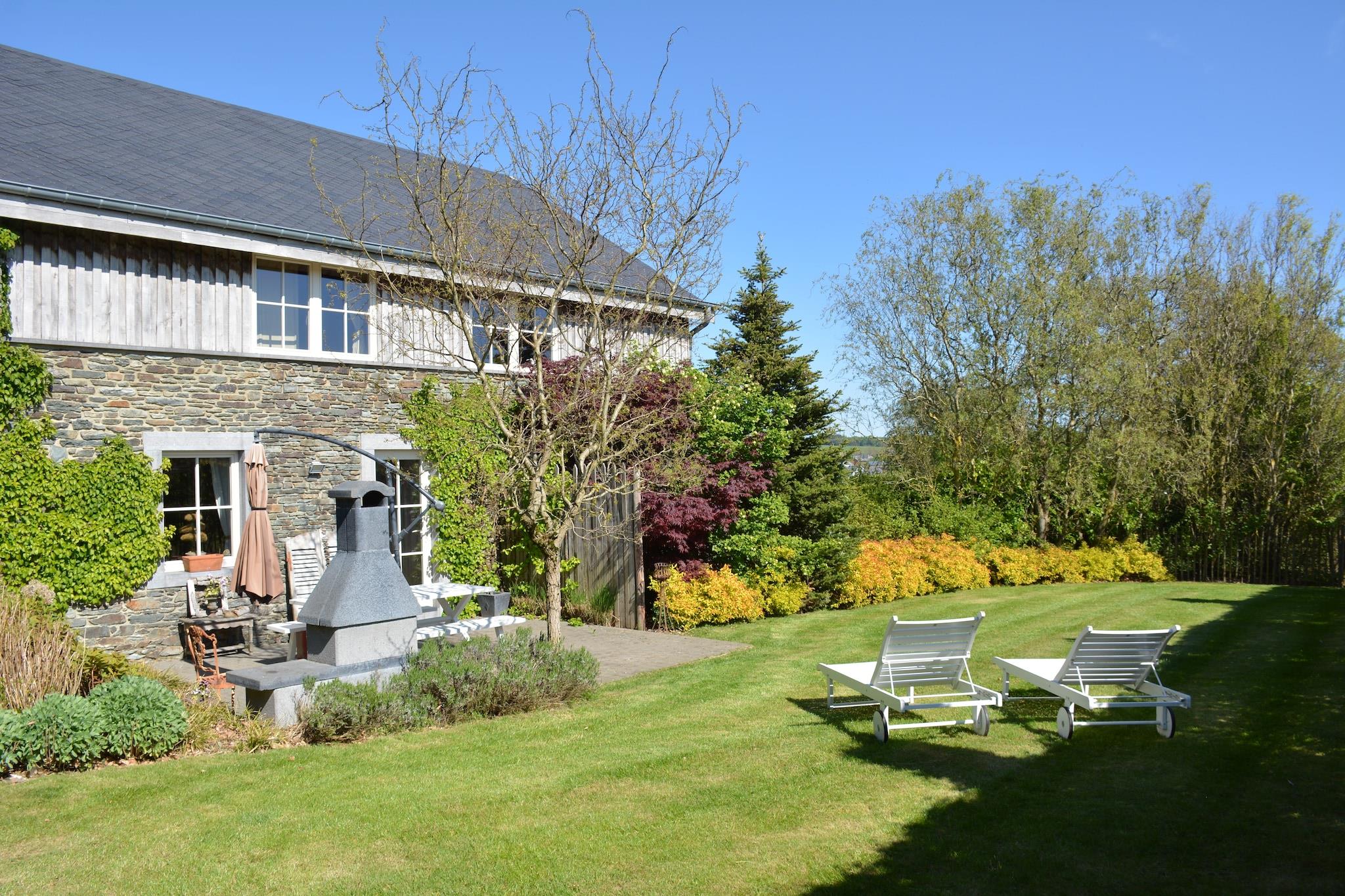 Dette charmerende 4-værelses sommerhus i Jehonville byder velkommen til op til 8 gæster og 1 kæledyr (8 EURO/nat), hvilket gør det ideelt for familier med børn. Beliggende kun 1 km fra skoven, er det perfekt til fredelige gåture og naturflugter. Den sydøstvendte terrasse har udsigt over en privat have, hvor børn og kæledyr kan lege, mens voksne nyder en solrig grill. Indendørs kan du slappe af med en omgang bordfodbold eller hygge dig i stuen med tv og dvd-afspiller. Det åbne køkken er fuldt udstyret med keramisk kogeplade, ovn, mikroovn, opvaskemaskine og to kaffemaskiner. Soveværelserne er fordelt på tre etager, inklusive et køjeværelse med en-suite, og faciliteter såsom en børneseng og høj stol er til rådighed. I nærheden kan du nyde kajaksejlads på Semois-floden (11 km), eller udforske Rochehauts naturskønne stier og vandreturen Les Échelles de Rochehaut. For sjov med rumtema kan du besøge Euro Space Center (12 km), eller oplev den lokale arv på Musées du Fourneau Saint-Michel i Saint-Hubert. Spis på La table des ateliers i Bertrix, Le Campagnard i Tellin eller Le Rendez-vous Des Gourmets i Saint-Hubert.