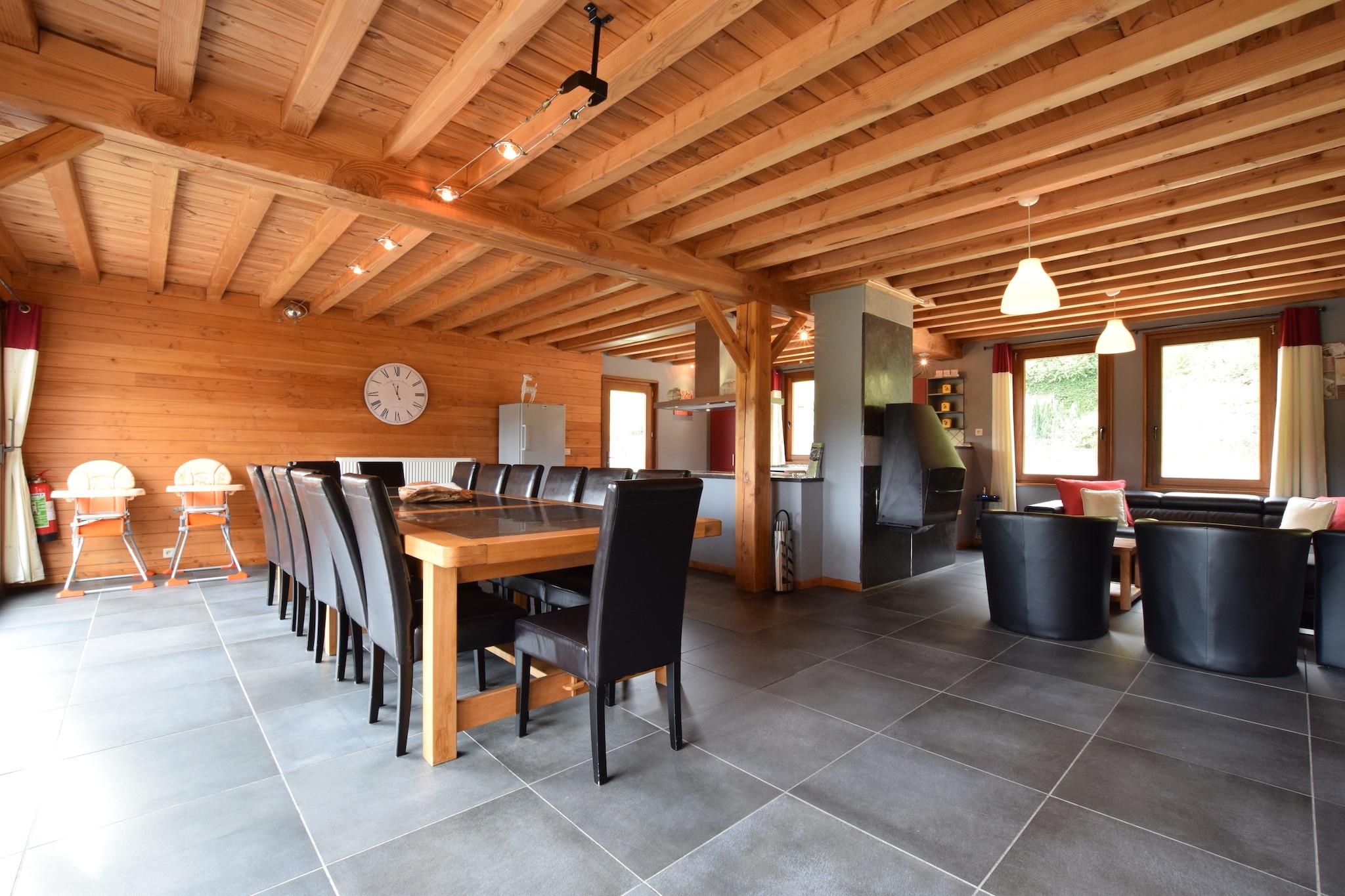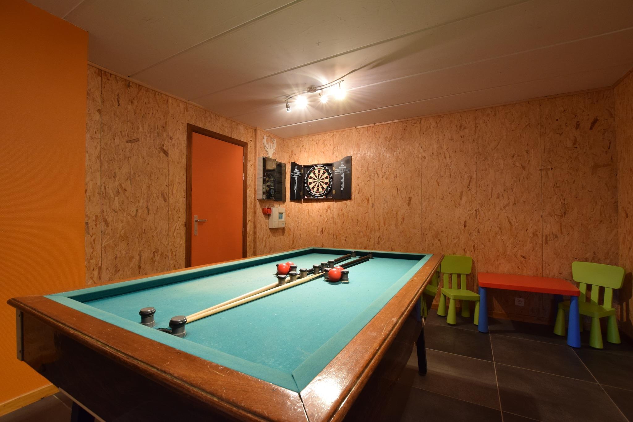 Gemt i Rendeux' frodige grønne områder tilbyder dette moderne 7-værelses feriehus et rummeligt og veludstyret oase for op til 15 gæster. Ideel til store familier eller grupper, huset har en privat sauna, centralvarme og en hyggelig pejs, perfekt til at slappe af efter en dag med at udforske Ardennerne. Huset indeholder et fuldt udstyret køkken, en stor spiseplads og flere opholdsrum for komfort og forbindelse. Til underholdning er der et legerum med bordtennis, billard og bordfodbold, samt en boulebane og udendørs legeredskaber til børn. En møbleret terrasse med grill inviterer dig til at nyde lange aftener udendørs. Der er også børnesenge og højstole. Beliggende kun 200 m fra skoven og 2 km fra byens centrum, er boligen tæt på vandre- og mountainbikestier, med restauranter og supermarkeder 5 km væk. Dagsture til La Roche-en-Ardenne, Durbuy eller Barvaux-labyrinten er let tilgængelige.