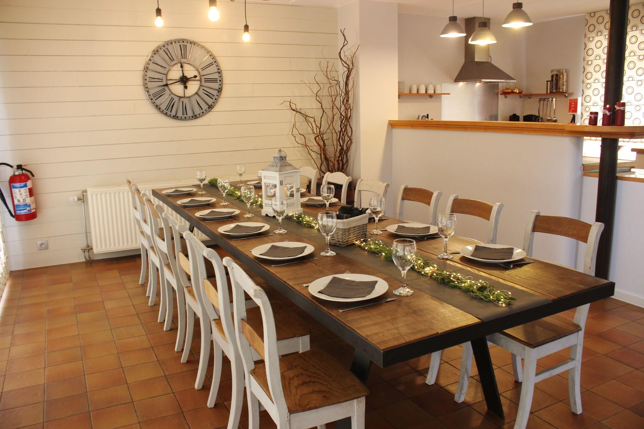 Dette er et rummeligt og komfortabelt feriehus med 5 soveværelser i Jupille, i den belgiske Ardennerne. Det har en privat sauna, hvor du kan slappe af efter en lang dag. Du kan bo her i komfort med en stor familie på 12 personer eller 2 mindre familier. Regionen består af et smukt skovområde og har gode forbindelser til turistbyen La Roche, den charmerende by Durbuy og floden Ourthe. I området kan du gå vandreture, svømning, vandreture, mountainbike osv. Supermarkeder og restauranter ligger 4 km derfra. For en aftentur ligger byens centrum 5 km væk. Du kan også gå en afslappet gåtur ved søen 5 km. Dette feriehus har centralvarme for komfort i vintersæsonen. Du kan nyde solskinstimerne i den private møblerede have eller på den private terrasse. I fritiden kan du spille bordtennis. Børnene har en legeplads med sandkasse og boulebane til at hygge sig udendørs. Der er 4 parkeringspladser på forsiden af huset.