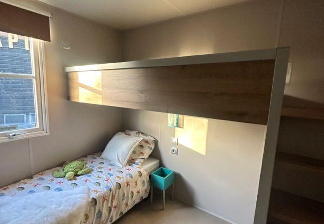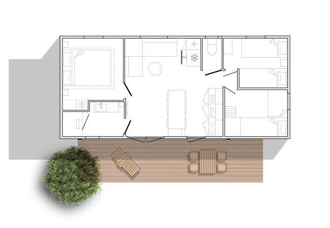 The house accommodates up to six people and features a modern interior, three bedrooms, a fully equipped kitchen, and a cosy living space. Thanks to the private terrace and quiet location, you can relax here wonderfully – whether you choose breakfast in the morning sun or a long summer evening with a view of the greenery.