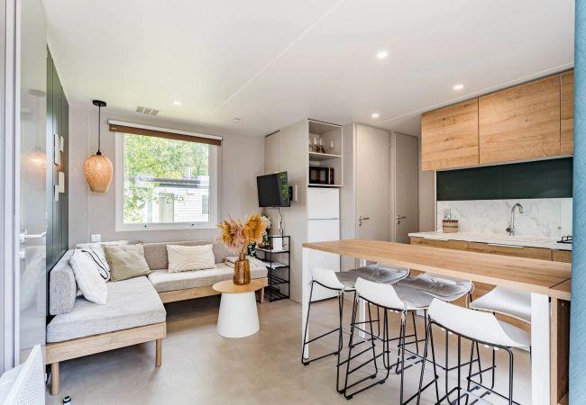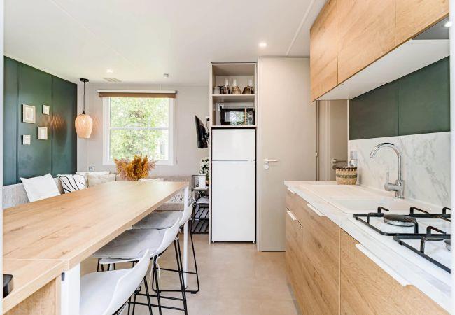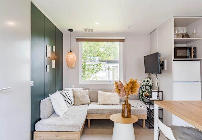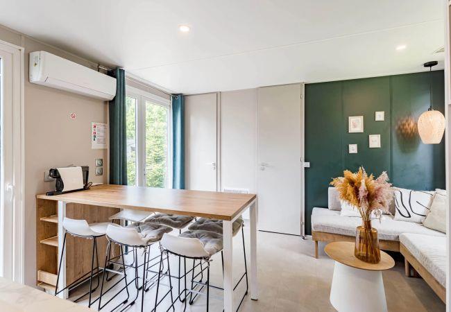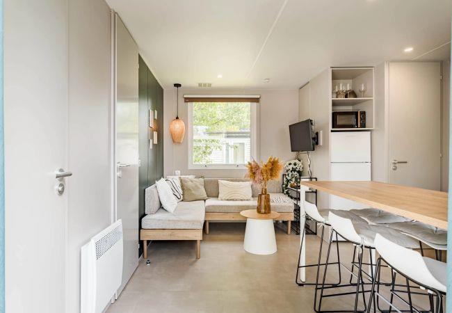 Holiday home Family PL-75 is located on the small-scale holiday park Papillon Kinrooi in Belgian Limburg, close to the Maasplassen and surrounded by nature. This spacious accommodation is ideal for families or small groups who want to enjoy peace, comfort and a green environment.