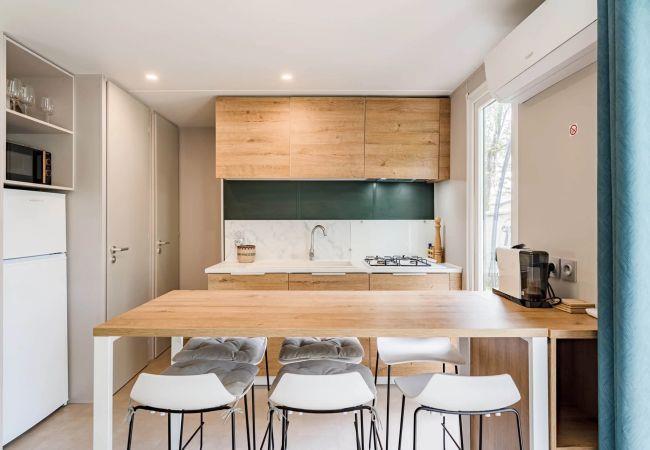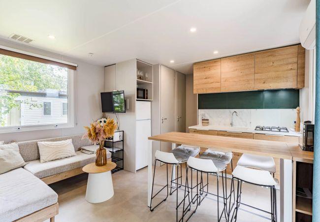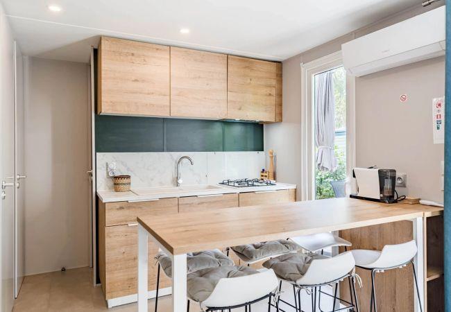 The house accommodates up to six people and features a modern interior, three bedrooms, a fully equipped kitchen, and a cosy living space. Thanks to the private terrace and quiet location, you can relax here wonderfully – whether you choose breakfast in the morning sun or a long summer evening with a good glass of wine.