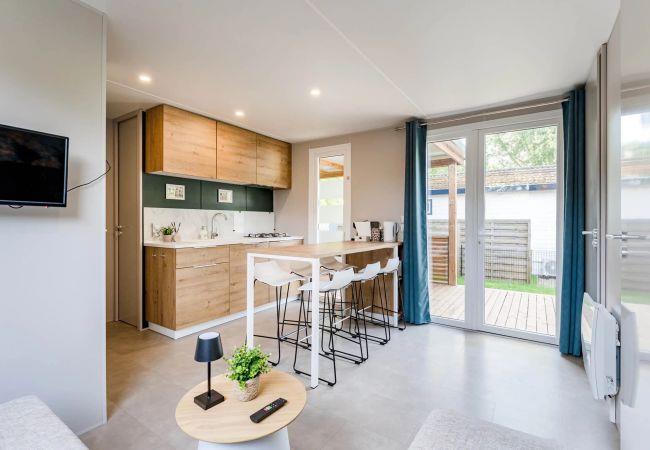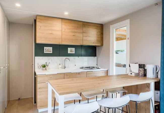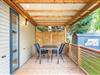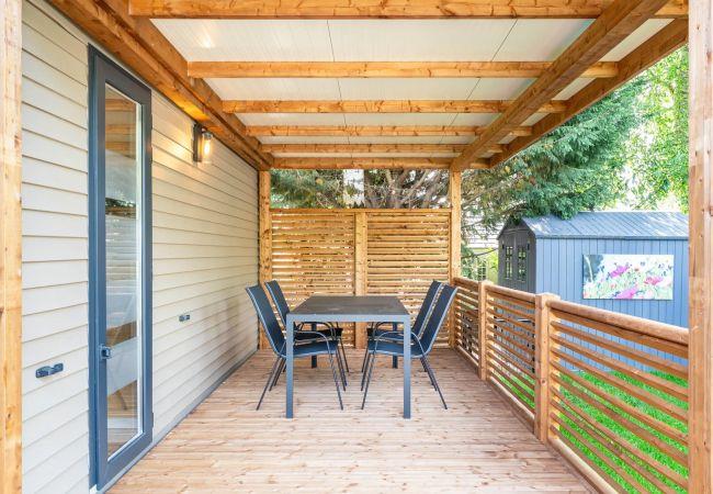 The house accommodates up to six people and features a modern interior, three bedrooms, a fully equipped kitchen, and a cosy living space. Thanks to the private terrace and quiet location, you can relax here wonderfully – whether you choose breakfast in the morning sun or a long summer evening with a view of the greenery.