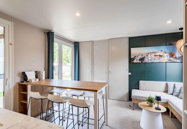 Holiday home Family PL-82 is located on the small-scale holiday park Papillon Kinrooi in Belgian Limburg, close to the Maasplassen and surrounded by tranquillity and nature. This spacious accommodation is ideal for families or small groups who want to enjoy comfort, privacy and a green environment.