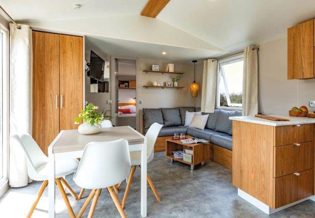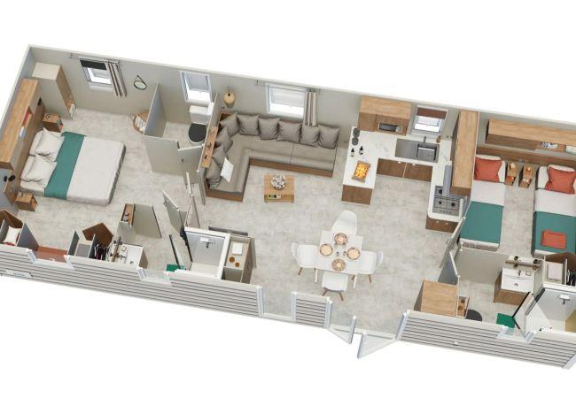 Each dwelling is modernly furnished and features a fully equipped kitchen, a cosy living area, comfortable bedrooms, and a private terrace. Thanks to the small-scale layout of the park, you enjoy plenty of privacy and a personal atmosphere.
