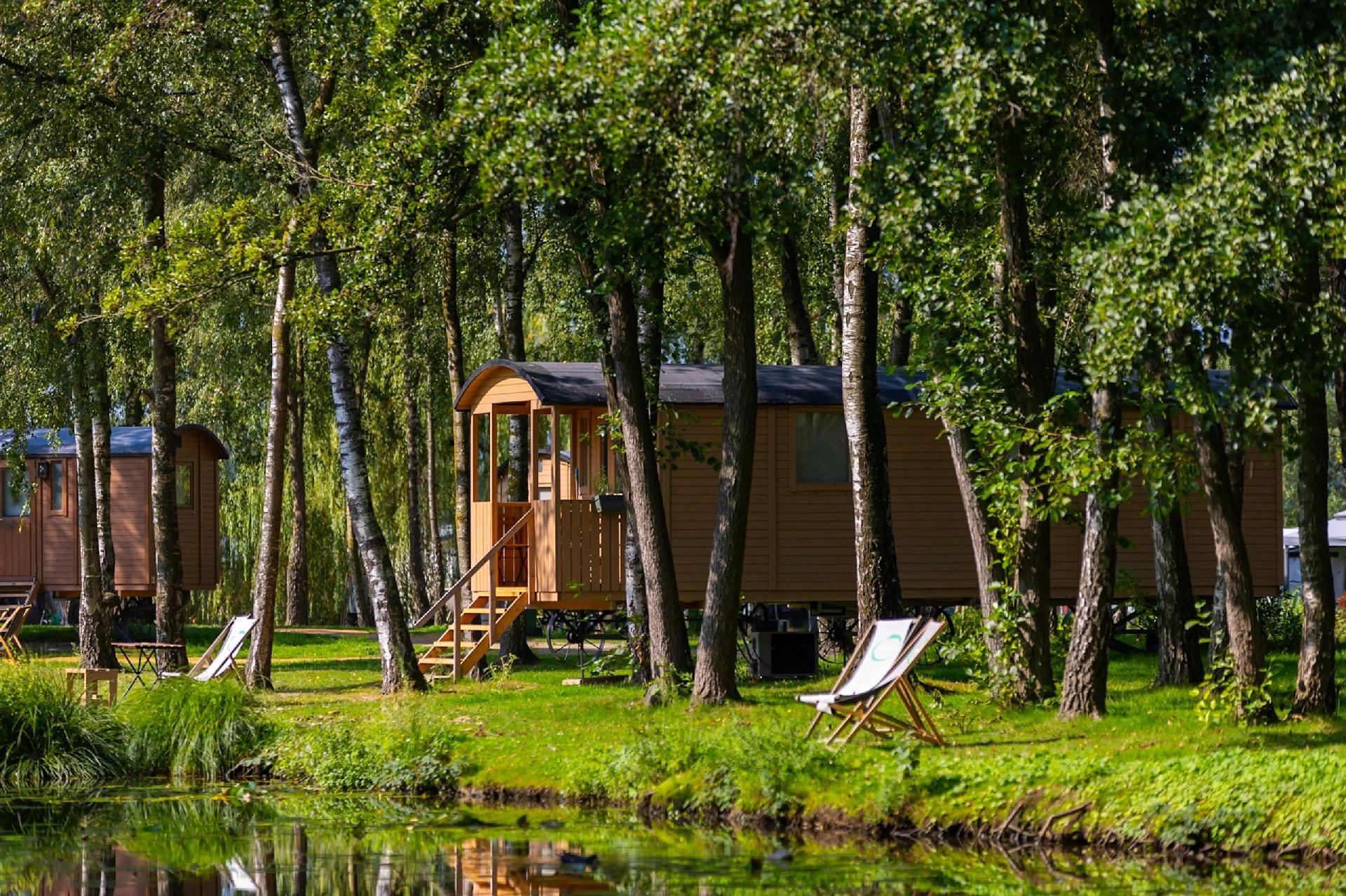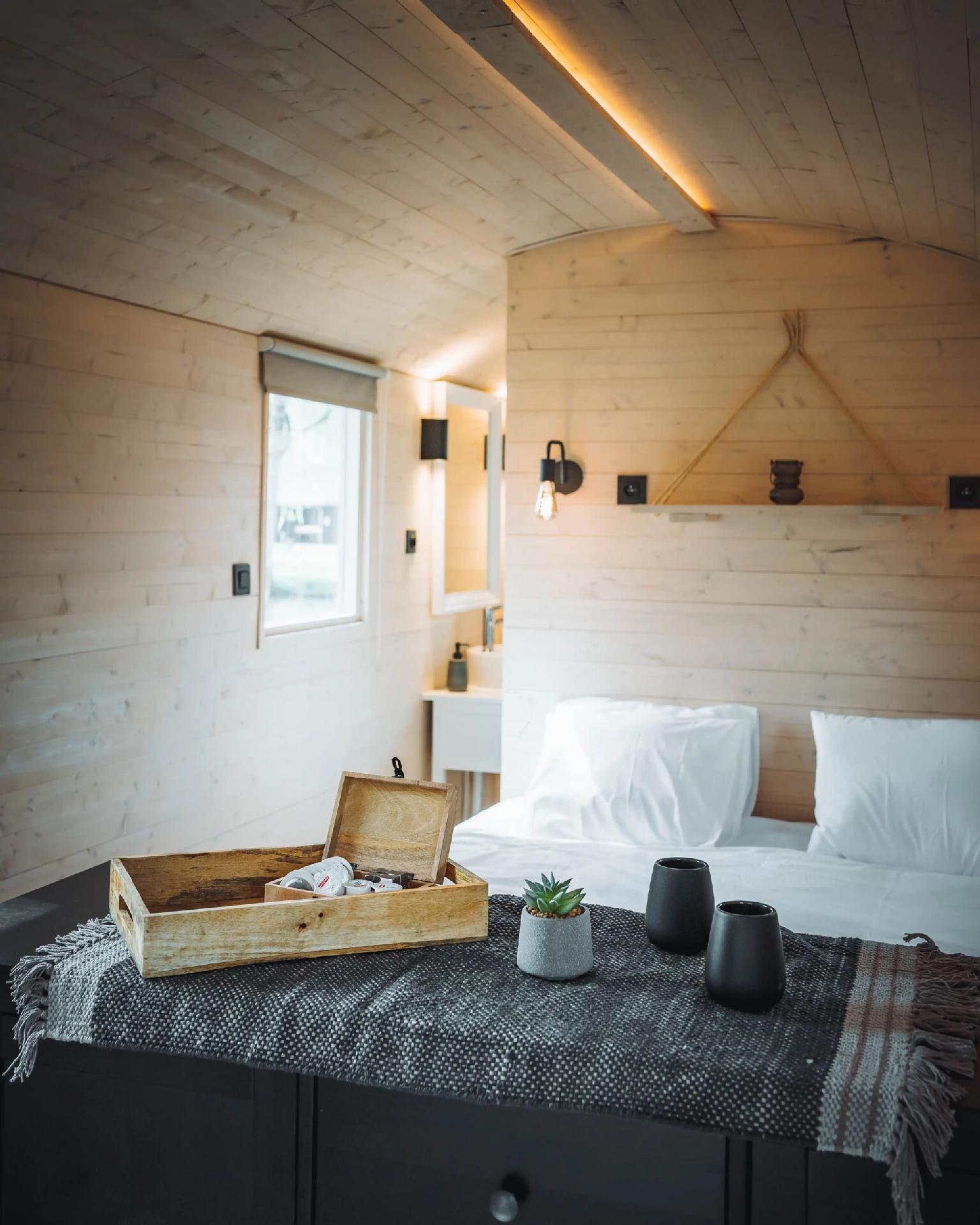 The caravan is suitable for four people and features a cosy sleeping area, a compact seating area and its own terrace with a view of the greenery. Here you can enjoy breakfast in the morning sun, a good book in the afternoon or a relaxed evening under the stars.
