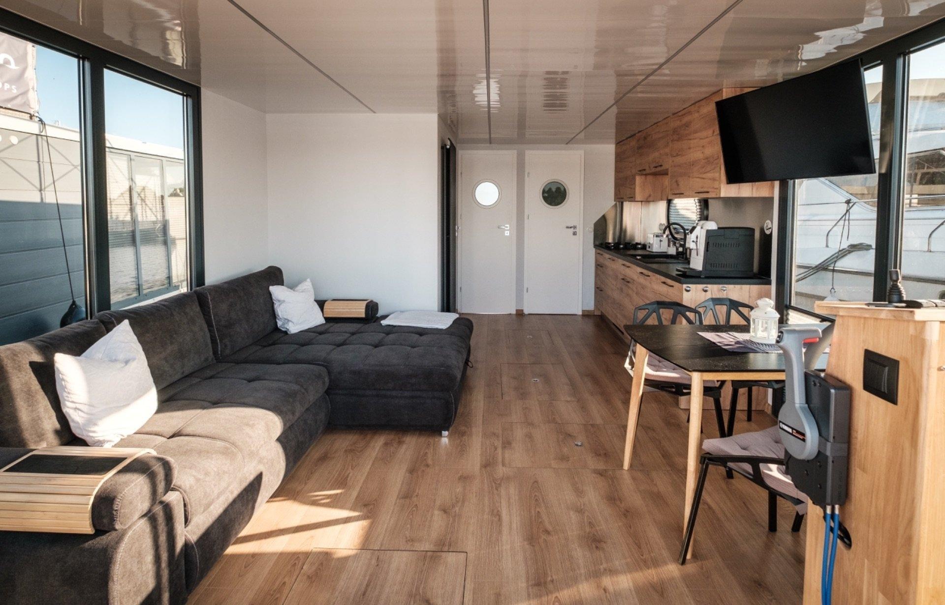 Urlaub auf dem Hausboot davon träumen viele. Machen Sie doch diesen Traum wahr. Warum Urlaub am Wasser, wenn Sie auch Urlaub auf dem Wasser genießen können. Und dabei auf nichts verzichten müssen.Klingt das verlockend? Dann kommen Sie an Bord. Unser stationäres Hausboot bietet Ihnen alles, was Sie für Entspannung und Genuss benötigen. Egal ob für ein Wochenende oder einen 2-wöchigen Urlaub. BITTE BEACHTEN SIE, DASS MIT DEM HAUSBOOT NICHT GEFAHREN WERDEN KANN. Entdecken Sie von der Unterkunft an Bord des Hausbootes faszinierend schöne Landschaften und malerische Städte in der Region zwischen Nimwegen, Venlo und dem Niederrhein. Egal ob zu Wasser oder z.B. mit dem Fahrrad. Genießen Sie den Aufenthalt an Bord und fühlen Sie sich fast wie zuhause. Sie müssen dabei weder auf gut ausgestattete Küche noch ein modernes Badezimmer verzichten. Wachen Sie mit einer Tasse Kaffee und Blick aufs Wasser auf. Oder verwöhnen Sie sich abends mit einem Glas Wein auf der Dachterrasse und beobachten Sie den Sternenhimmel. Urlaub auf einem Hausboot ist ein unvergleichliches Erlebnis, das Sie garantiert nicht mehr vergessen werden.Was ist ein Hausboot?Ein Hausboot ist eine schwimmende Unterkunft, auf der Sie wie in einer Wohnung leben können. Im Gegensatz zu einem Sportboot ist die Form rechteckig, sodass Sie sich ganz wie zuhause fühlen können. Im Gegensatz zu einem Wohnboot, das fest verankert ist und keinen Antrieb besitzt, können sie mit einem Hausboot auch ablegen und fahren. Fahren mit unserem Hausboot ist aktuell leider nicht möglich, das Hausboot wird wie eine Ferienwohnung OHNE Fahrmöglichkeit vermietet. Mit dem Hausboot fahren? Mit unserem Hausboot kann nicht gefahren werden. Stattdessen bieten wir Ihnen aber ein Kanu für 3-4 Personen, ein SUP sowie eine Segeljolle (Korsar), mit denen Sie die Gegend erkunden können und alle Wassersportmöglichkeiten haben, die Sie sich wünschen. Wo liegt das Hausboot?Das Hausboot liegt im Grenzgebiet zwischen Deutschland und den Niederlanden. Das Gebiet wird auch De Bijland genannt. Die Gegend ist heute als Naherholungsgebiet und dort speziell für den Wassersport bekannt. Heimathafen De BijlandUnser Hausboot liegt im idyllischen Hafen De Bijland. Der Jachthafen De Bijland ist der perfekte Ausgangspunkt für Urlauber auf Hausbooten, um die Umgebung zu erkunden. Direkt vom Steg aus starten Sie zu Bootstouren, während Wander- und Radwege in der malerischen Natur der Gelderse Poort nur wenige Schritte entfernt liegen. Auch Tagesausflüge mit dem Auto zu den Sehenswürdigkeiten der Region rund um Rhein, Waal und IJssel sind problemlos möglich.