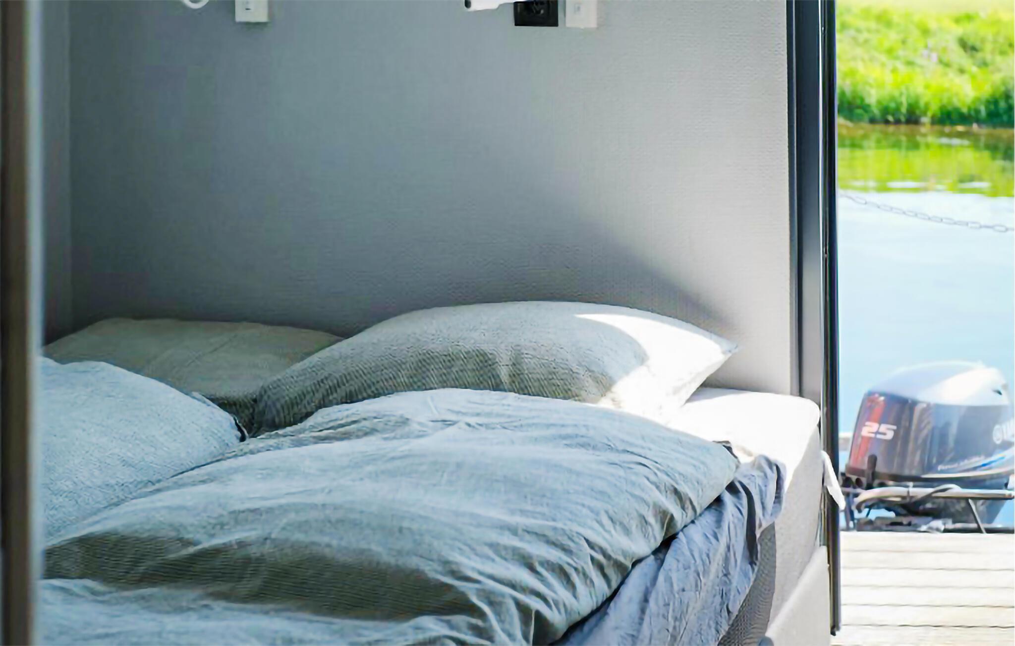 Velkommen til denne vidunderlige husbåd, hvor der venter jer en unik, maritim boligoplevelse, I sent vil glemme. Båden er flot, kompakt og stilsikkert indrettet med gode møbler og et veludstyret køkken, hvor I kan tilberede familiens livretter. Prikken over i'et er dog den panoramiske udsigt, som kan nydes gennem de mange, store vinduespartier fra morgen til aften.