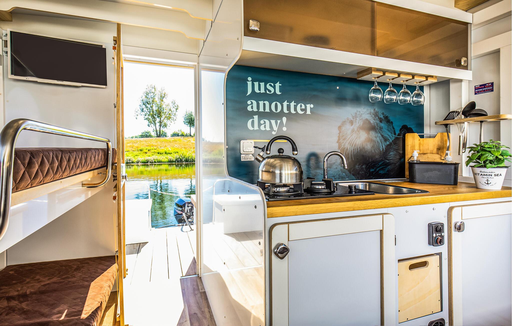 Gør jer klar til en familieferie ud over det sædvanlige i denne charmerende husbåd med to fine terrasser.