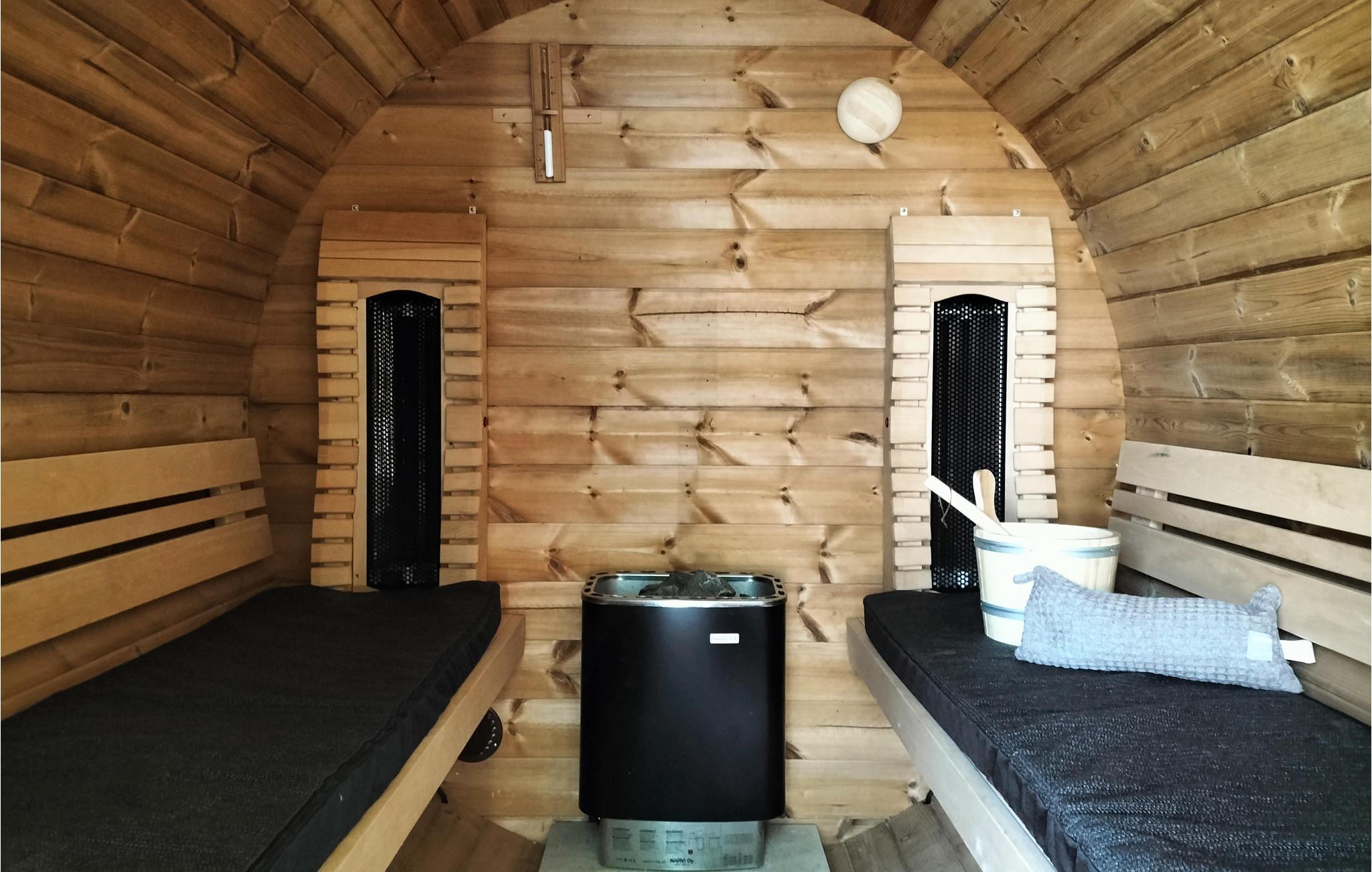 Huset er komfortabelt indrettet og byder blandt andet på flere hyggelige soveværelser og en rummelig stue, hvor I kan samles for at spise feriens måltider og spille kort eller brætspil. Sovepladserne under det spidse tag med synlige gamle træbjælker er særligt attraktive, ligesom det finske vildmarksbad udenfor, hvor en dejlig feriedag kan afsluttes med en drink til den dejlige kombination af den friske luft og det varme vand.