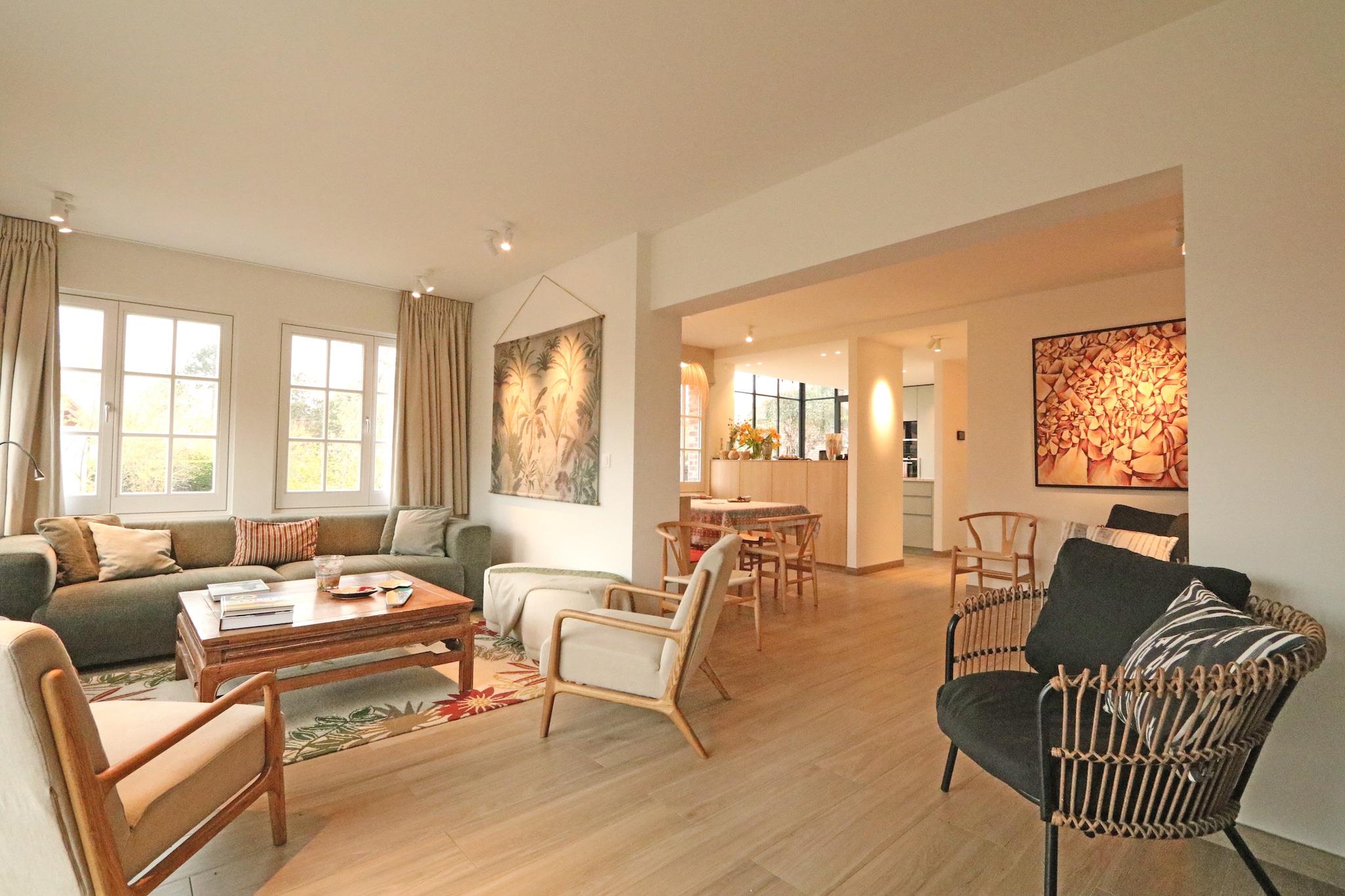 Gemt væk i en af Knokkes rolige og charmerende gyder, tilbyder denne smukt renoverede villa en fredelig tilflugtssted i hjertet af Het Zoute - hvor elegance møder ro. Med fem rummelige soveværelser og fire luksuriøse badeværelser er dette private tilflugtssted ideelt for familier eller grupper, der søger stil, plads og ro. Villaen er omhyggeligt designet med komfort i tankerne og blander moderne detaljer med tidløs klasse. Hver detalje er omhyggeligt udvalgt for at sikre en eksklusiv og hjemlig oplevelse, fra de indbydende opholdsområder til de eksklusive finish overalt. Rigelig privat parkering gør ankomst og udforskning problemfri. Træd udenfor og find dig selv få minutter fra den ikoniske Zeedijk-promenade, den gyldne trekant af luksusshopping og de raffinerede spisesteder i Knokke-Heist. Gå en tur gennem nærliggende gallerier, spil tee på en af Belgiens mest naturskønne golfbaner, eller oplev den vilde skønhed i Zwin naturreservat. Uanset om du er her for at slappe af, spise, shoppe eller udforske, placerer denne villa dig i hjertet af det hele - men lige langt nok væk til at nyde din fred. Bemærk: Turistskatten er inkluderet i lejeprisen.