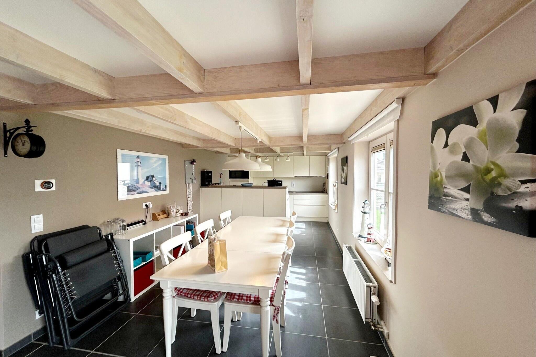 Velkommen til din fortryllende tilflugtssted - et hyggeligt sommerhus, hvor moderne komfort møder en varm, indbydende atmosfære. Træd ind i hjertet af hjemmet, hvor stuen har et fladskærms-tv med Chromecast til problemfri streaming. Med højhastigheds-WiFi tilgængeligt, kan du nyde dine yndlingsprogrammer eller planlægge nærliggende eventyr, mens du soler dig i den blide varme fra gascentralvarme. Det åbne køkken er en kokkens fornøjelse, udstyret med en opvaskemaskine, Senseo kaffemaskine, Dolce Gusto-maskine, kombiovn og induktionskogeplade - perfekt til at lave dejlige måltider til familie og venner. Denne dejlige hytte indeholder tre indbydende soveværelser, der blander komfort med funktionalitet. I stueetagen kan et smukt indrettet soveværelse prale af en luksuriøs 1,60 m dobbeltseng klædt i hyggelige dyner til afslappende nætter. Ovenpå finder du to identiske soveværelser, hver med to enkeltsenge (90 cm), hvilket sikrer rigelig soveplads til alle. Det stilfulde badeværelse har bruseniche og håndvask, suppleret med et separat toilet for ekstra bekvemmelighed. Et sandt højdepunkt ved denne ejendom er den solrige lukkede have, ideel for børn at lege og voksne til at slappe af med en bog eller drink. Nyd havemøblerne i skyggen af en parasol, forstærket af læhegn til en dejlig udendørsoplevelse. Beliggende kun 3 km fra Oostduinkerke Strand og en kort køretur fra attraktioner som Plopsaland De Panne, finder dette charmerende sommerhus den perfekte balance mellem afslapning og eventyr. Med parkering til én bil og en ikke-rygerpolitik indendørs lover det elskede øjeblikke i komfort og ro. Bemærk venligst, at el-, varme- og varmtvandsforbrug ikke er inkluderet og vil blive trukket fra dit depositum. Brugen har en tendens til at være højere i vintermånederne. (Maksimalpriser: 7,25 EURO/m³ vand – 0,64 EURO/kWh el (dag) – 0,44 EURO/kWh el (nat) – 1,46 EURO/m³ gas).