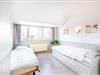 Stueetage: (Stue(Fjernsyn(fladskærm, digital), spisebord, sofahjørne), Køkken(kogeplade(glaskeramisk), elkedel, brødrister, kaffemaskine, ovn, mikrobølgeovn, opvaskemaskine , køleskab(+ fryser)), toilet(toilet), vaskemaskine, strygebræt, strygejern) På 1. etage: (soveværelse(enkeltseng(dynebetræk, 90 x 200 cm), enkeltseng(dynebetræk, 90 x 200 cm), håndvask), soveværelse(enkeltseng(dynebetræk, 90 x 200 cm), enkeltseng(dynebetræk, 90 x 200 cm)), soveværelse(dobbeltseng(dobbelt dynebetræk, 160 x 200 cm), håndvask), soveværelse(enkeltseng(dynebetræk, 90 x 200 cm), dobbeltseng(dobbelt dynebetræk, 140 x 200 cm), håndvask), badeværelse(badekar med bruser, håndvask, toilet), badeværelse(bruser, håndvask, toilet)) badekar eller bruser, varme(central, gas), terrasse, have, cykelopbevaring, havemøbler, solstole, grill, parkering, Parasol