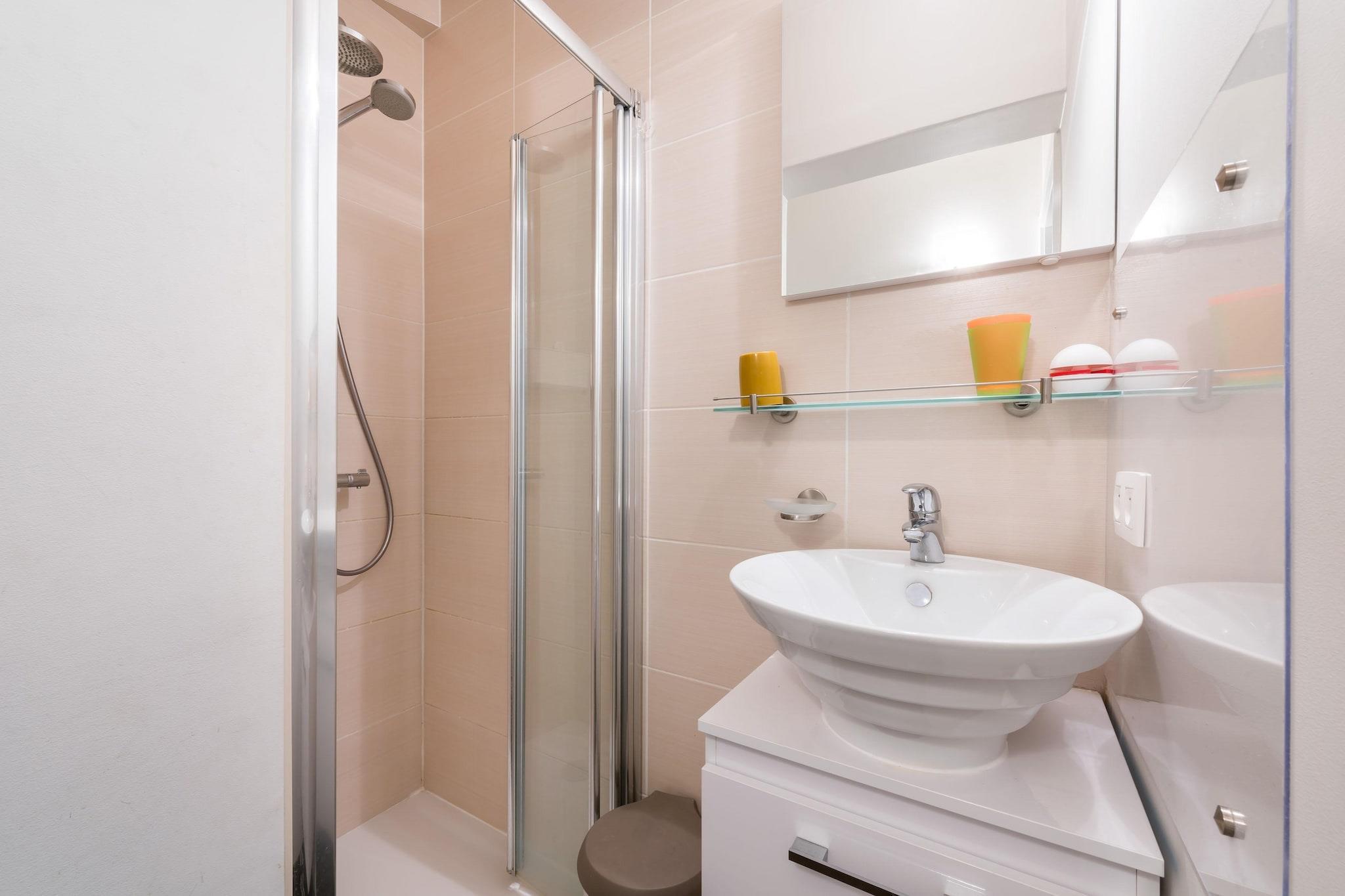 Renoveret 2-værelses lejlighed i hævet stueetage. Lejligheden ligger få skridt fra havet og tæt på butikker og restauranter. Moderne møbleret og udstyret med alle bekvemmeligheder. Der er cirka 10 trin, før du når bygningens indgang. Sidekig til havet fra stuen. Wifi og digital-tv. Kæledyr ikke tilladt. Planering Entré, stue med havudsigt, åbent køkken, badeværelse med bruser og toilet, soveværelse med dobbeltseng, soveværelse med køjesenge til 3 personer. Lukket bagterrasse. Garageboks 250m inkluderet. Bemærk: Byggearbejdet starter den 1. september 2025 og varer i 5 måneder, med mulige forstyrrelser på alle dage undtagen søndage og helligdage.
