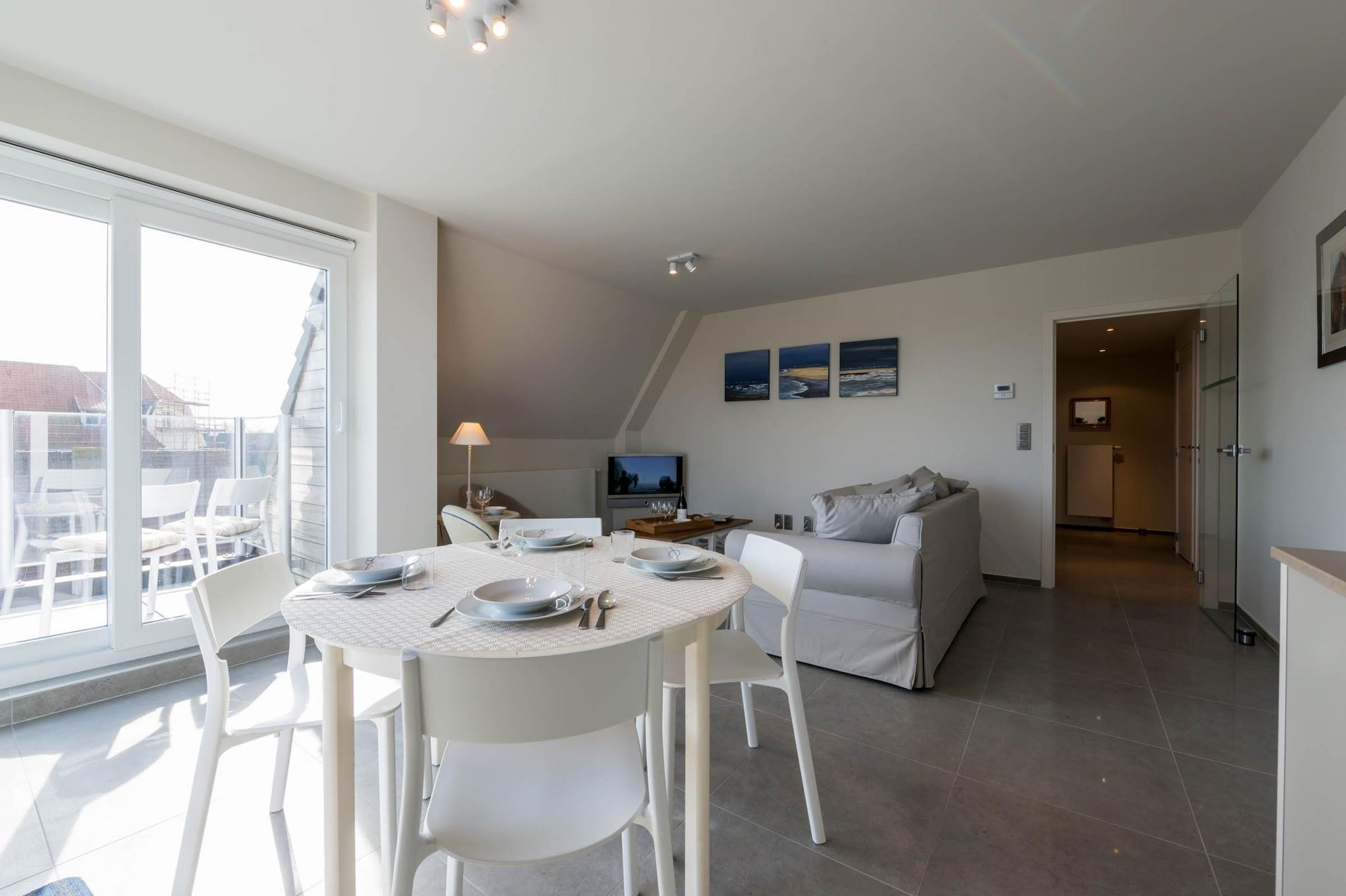 Skøn ny lejlighed, beliggende i Tjènne-boligen, som kan rumme 6 personer (+ barneseng). Du nyder en smuk udsigt til en skøn solorienteret hjørneterrasse, så du nyder et lyst og behageligt ophold. Lejligheden ligger 5 minutter fra havet og klitterne. Husdyr og rygere er ikke tilladt. Digitalt TV og Wifi til rådighed. Layout Denne lejlighed består af entre, toilet, badeværelse med bruseniche, solrig stue med udgang til terrasse, veludstyret køkken, 2 soveværelser med hver en dobbeltseng. Sovesofa i stuen.
