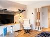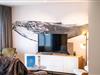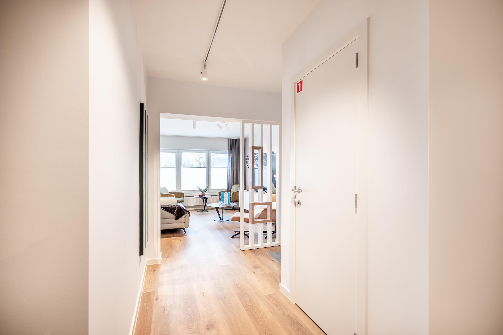 Stueetage: (entre, åbent køkken(kogeplade(induktion), brødrister, emhætte, kaffemaskine, combi-mikroovn, opvaskemaskine , køleskab(+ fryser), Stavblender), stue / spisestue(Fjernsyn(fladskærm), spisebord, sofahjørne), soveværelse(dobbeltseng(dobbelt dynebetræk, 160 x 200 cm), håndvask), soveværelse(dobbeltseng eller 2 enkeltsenge Senge(dynebetræk, 90 x 200 cm), håndvask), badeværelse(badekar, bruser), toilet(toilet), pulterkammer(tørretumbler, vaskemaskine)) tremmeseng, varme(central), terrasse, havemøbler, Parasol, elevator