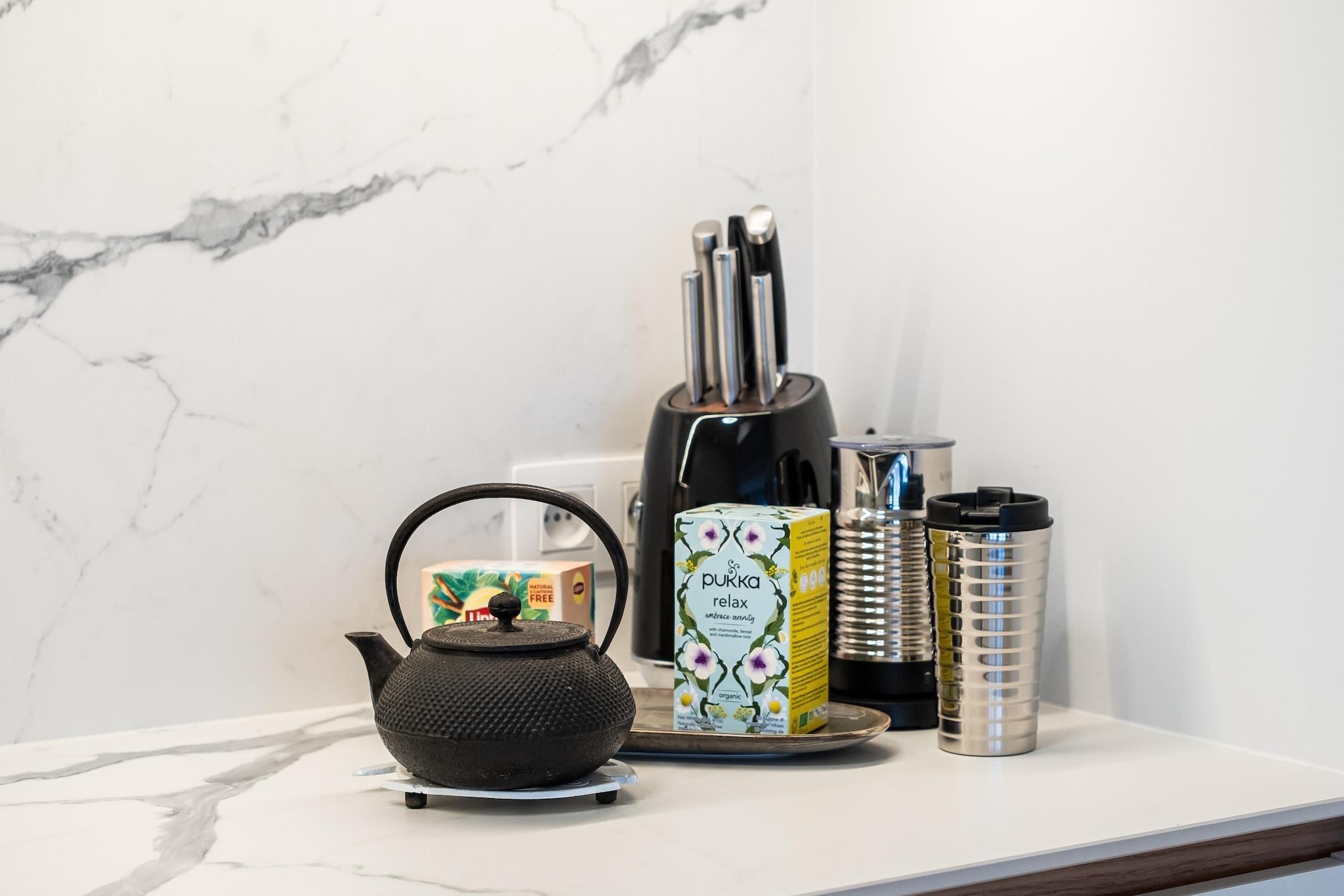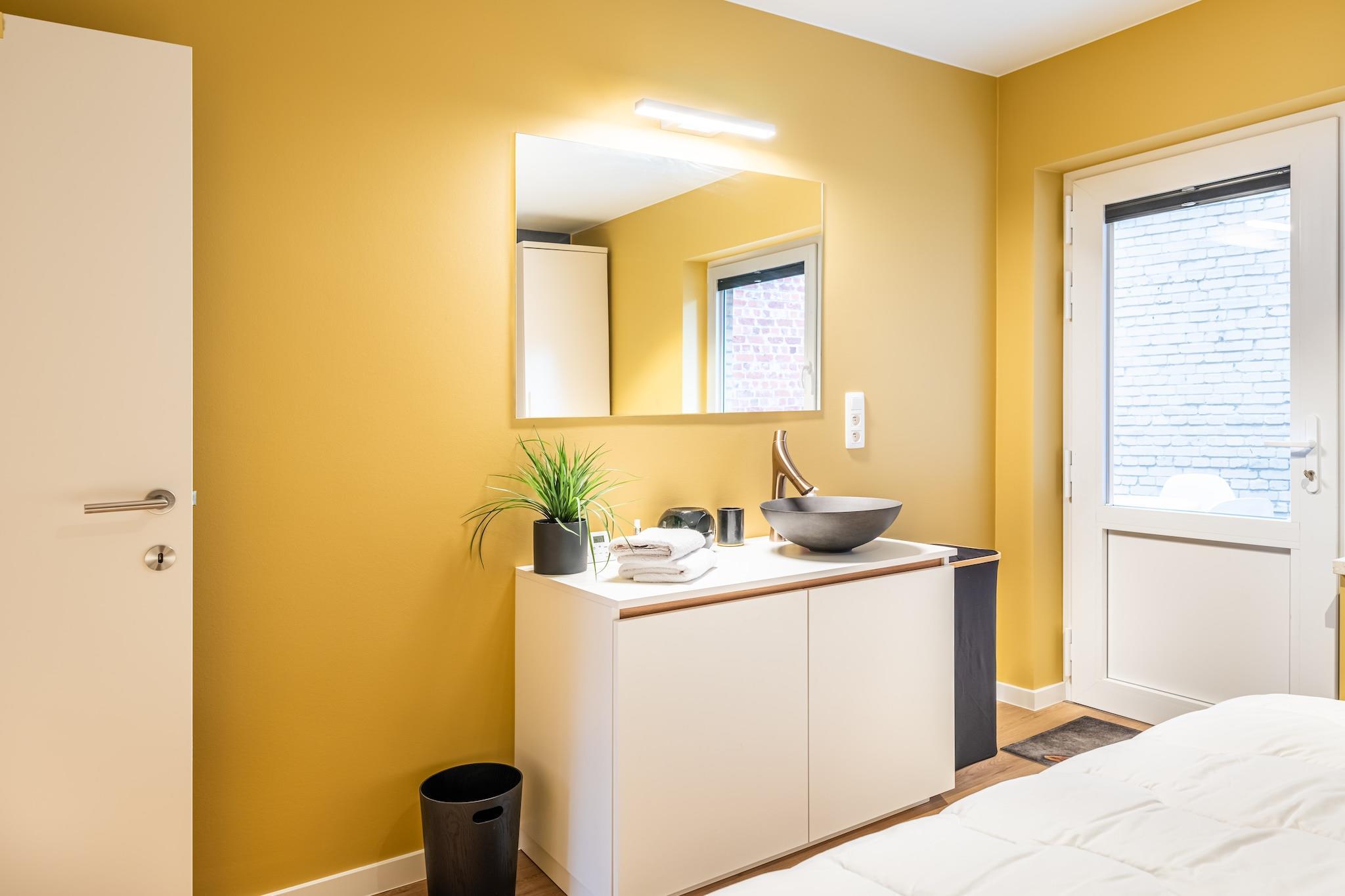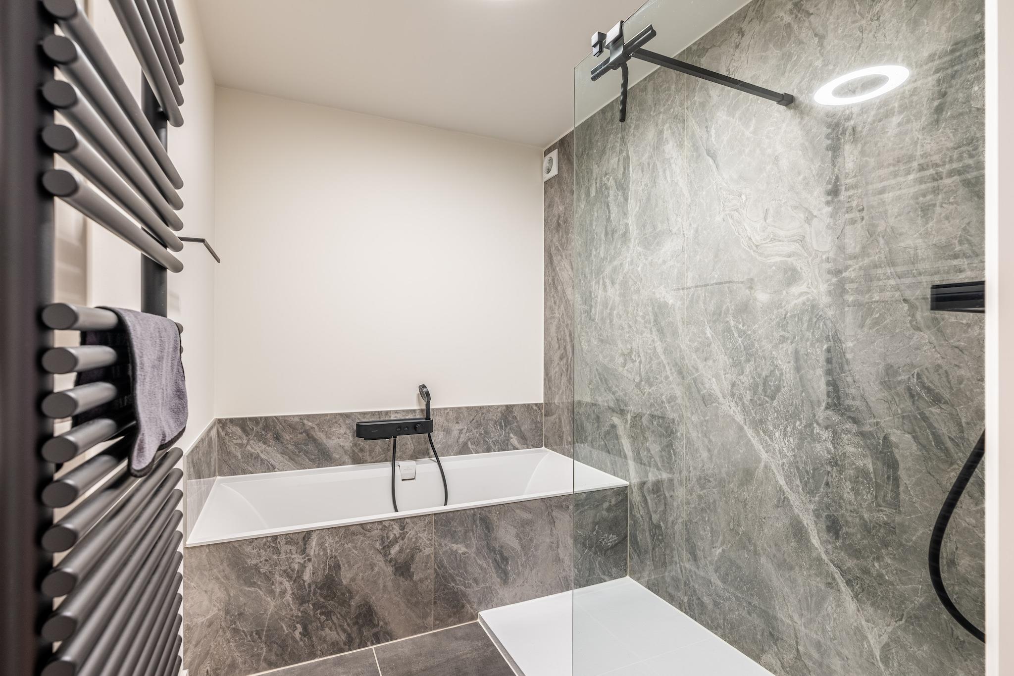 300m fra havet - 2 soveværelser - 4 personer Fuldstændig renoveret og moderne lejlighed i stueetagen, 300 m fra havet, i centrum af Koksijde, tæt på havet, butikker og restauranter. Kæledyr tilladt efter anmodning. Layout Lejligheden består af entré, badeværelse med bruseniche og dobbelt badekar, vaskerum med vaskemaskine, tørretumbler og tørrestativ, separat toilet, to soveværelser, det ene med dobbeltseng og det andet med to enkeltsenge. senge. Hvert soveværelse har en håndvask og et stort spejl. Stuen består af et fjernsyn, en gulvlampe, to sofaborde, en elektrisk to-personers sofa, en relax-lænestol med fodstøtte og to individuelle lænestole. Spisestuen og køkkenet består af en gulvlampe, et bord (kan udvides) med 4 stole, to barstole, en induktionskomfur, en emhætte med fjernbetjening, en kombineret mikroovn, en opvaskemaskine. For mere privatliv er lejligheden udstyret med elektriske skodder, gardiner og Luxaflex. Bagerst i lejligheden er der lukket gårdhave med havemøbler (bord + stole og loungesæt), stor parasol og oplyste plantebede.