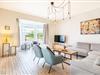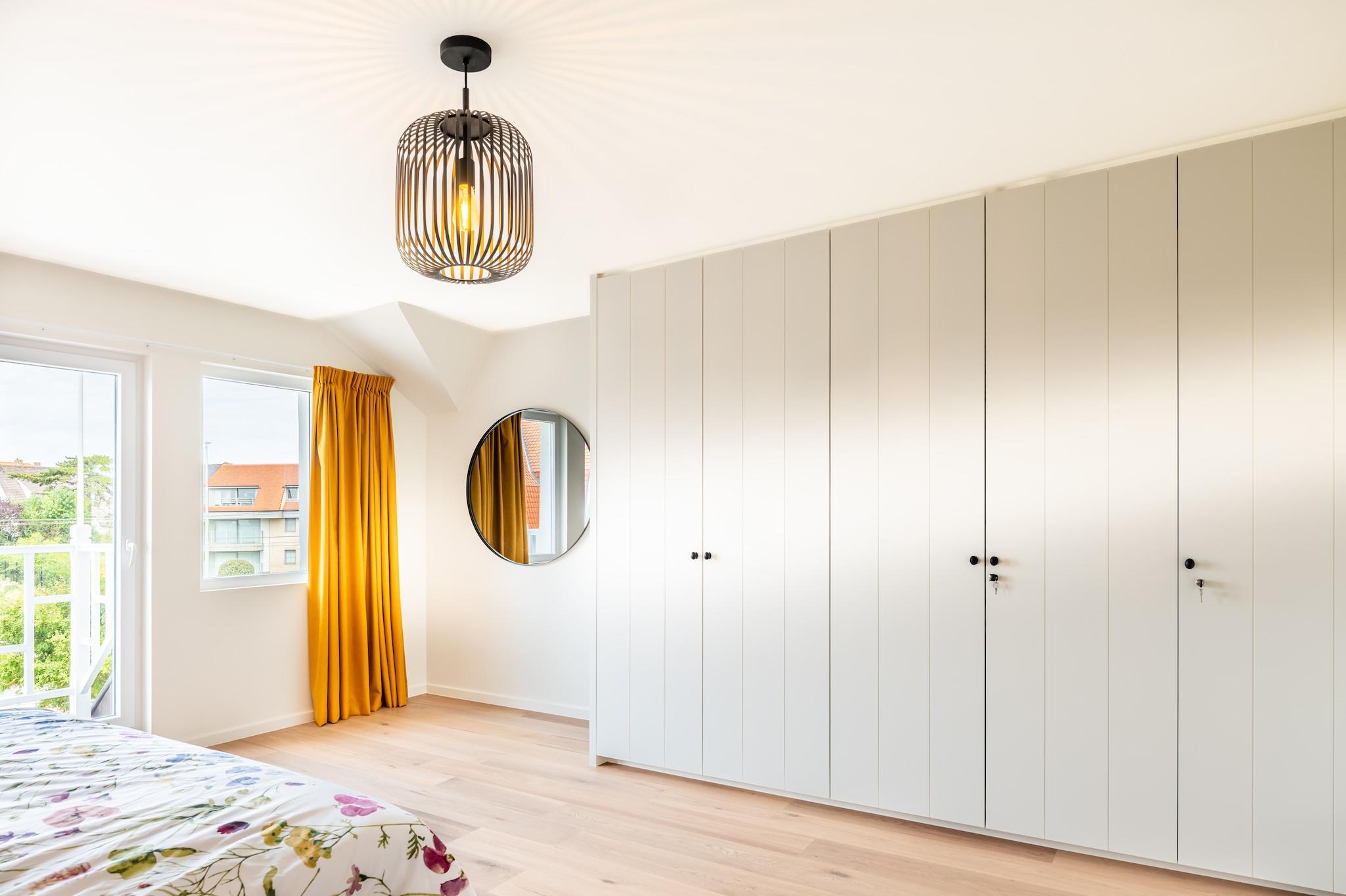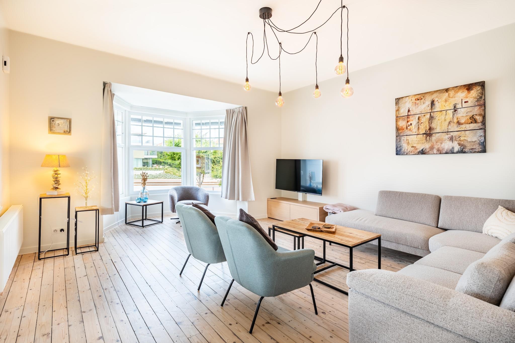 I denne renoverede kystvilla fuld af charme og moderne komfort kan du tilbringe en skøn ferie ved havet med 8 personer. Ikke alene vil du bo i gåafstand fra havet, men du kan nemt nå centrum af Koksijde og St-Idesbald til fods, på cykel eller med sporvogn. Den solrige terrasse og den smukt anlagte have med en anden terrasse, hvor du kan nyde aftensolen, er også udstyret med al komfort. Tag et hurtigt kig på billederne og beskrivelsen for flere detaljer. Layout: Stueplan: På gade- og haveplan ligger garagen, hvor du kan parkere cykler, klapvogne og cykelanhænger. Du kan parkere en bil foran garagen. Bag garagen er et bryggers, et vaskerum og et fuldt udstyret badeværelse med separat toilet. Belle-étage: Husets hoveddør kan nås via en trappe (se billeder). Indenfor finder du en rummelig entré, en hyggelig stue, et toilet, trappen til toppen og det fuldt udstyret køkken, der giver udgang til den hævede terrasse. Du kan også tage trappen til haven via denne terrasse. 1. sal: På første sal ligger badeværelset med badekar, bruser, håndvask og toilet. 2 rummelige soveværelser med dobbeltseng (boksmadras), 1 barneseng og masser af skabsplads. Du går til næste etage via trappen. 2. sal: Her er der igen to soveværelser med dobbeltseng (boksmadras) og skabsplads. Disse værelser har aircondition