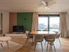 På 1. etage: (Indgang , åbent køkken(kogeplade, elkedel, brødrister, kaffemaskine, ovn, opvaskemaskine , køleskab(+ fryser), Stavblender), stue / spisestue(Fjernsyn(digital), spisebord, sofahjørne), soveværelse(dobbeltseng(dobbelt dynebetræk, 160 x 200 cm)), soveværelse(enkeltseng(dynebetræk, 90 x 200 cm), dobbeltseng(dobbelt dynebetræk, 140 x 200 cm)), badeværelse(badekar, bruser, håndvask, håndvask), toilet(toilet)) balkon, havemøbler(2 personer), elevator, barneseng, barnestol, strygebræt, strygejern