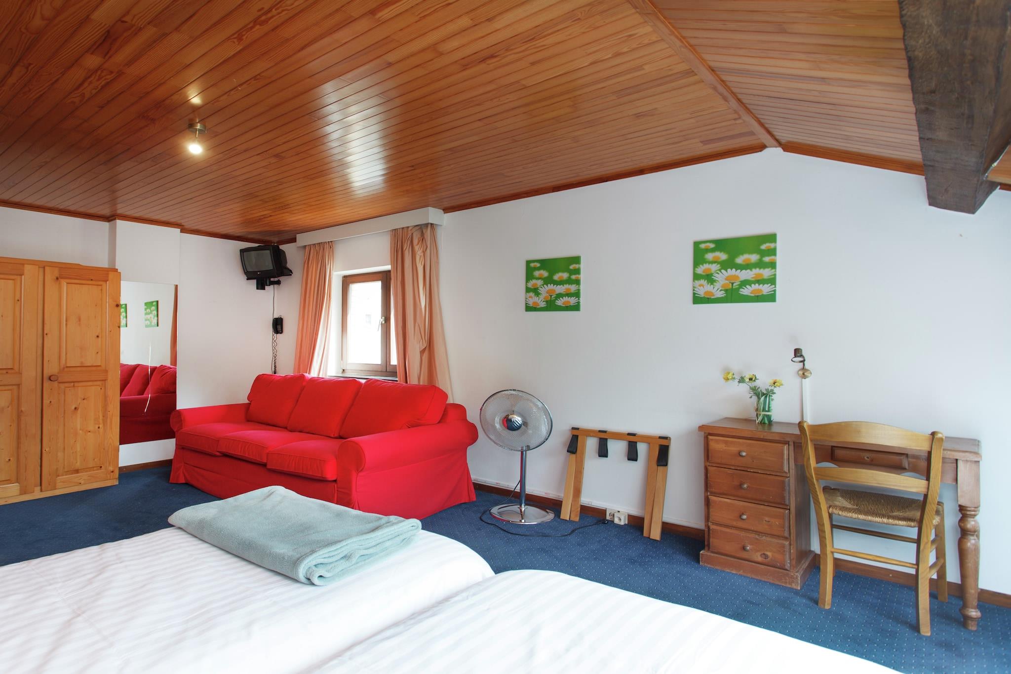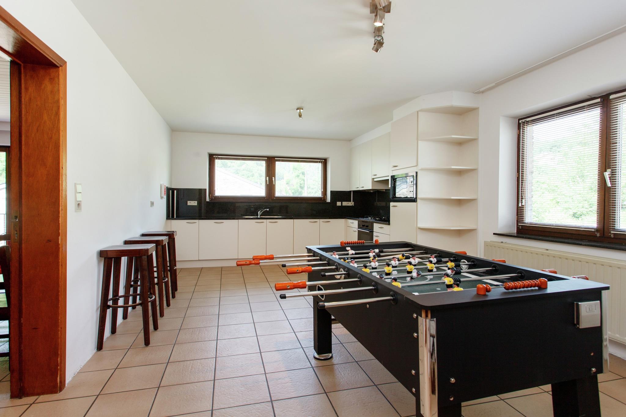 Beliggende i den naturskønne landsby Maboge nær La Roche-en-Ardenne, er dette rummelige feriehus perfekt til store grupper eller familiesammenkomster. Kun 4 km fra byens centrum kan gæsterne udforske det middelalderlige Château Féodal, sejle i kajak på Ourthe-floden eller slappe af ved Maboge Beach, et naturligt badested omgivet af skov. Slaget ved Ardennerne Museum og Barrage de Nisramont byder på rig historie og udendørs eventyr. Villaen strækker sig over tre etager og har 11 soveværelser med en-suite badeværelser, plus et gennemgangsrum og flere sovesofaer. Underholdning er rigeligt med et legerum udstyret med en spillekonsol, bordfodbold og billard og et afslapningsområde med sauna og jetstream. Det store køkken og spisestue med pejs gør gruppemåltider nemme, mens baren tilføjer et festligt præg. Udendørs kan du nyde en privat have, overdækket terrasse, grill og rigelig parkering. Nærliggende spisemuligheder omfatter Restaurant L'Apéro for belgisk-europæiske retter, Le Belvedere for naturskønne spisning og Chez Henri, en lokal favorit i La Roche.