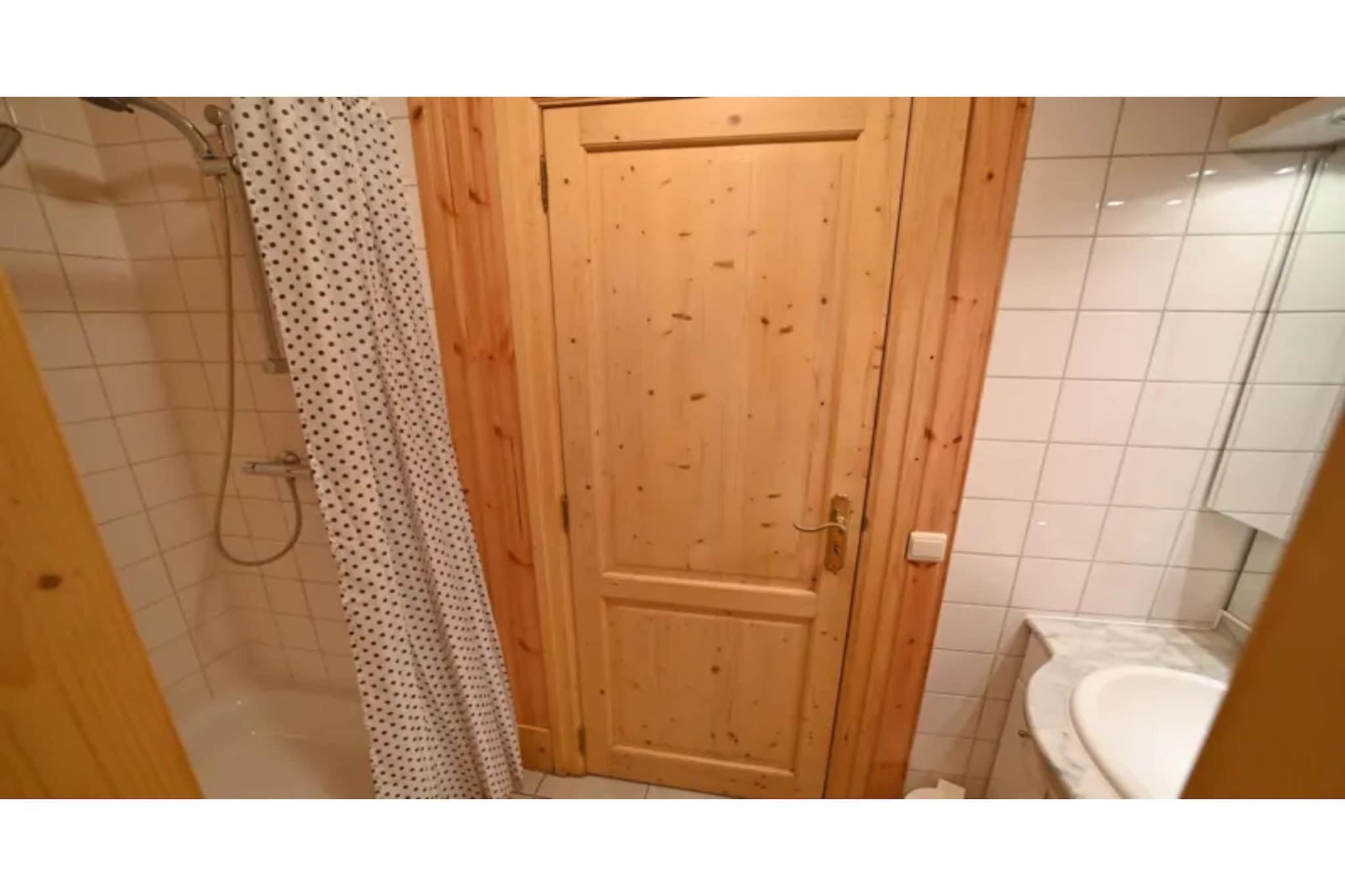 Stueetage: (Soveværelse med badeværelse(dobbeltseng, bruser, håndvask), Soveværelse med badeværelse(2x køjeseng, bruser, håndvask), toilet) På 1. etage: (Stue(dobbeltsovesofa, Fjernsyn(fladskærm), spisebord), Køkken(elkedel, komfur(elektrisk), kaffemaskine, mikrobølgeovn, opvaskemaskine , køleskab), loungerum(bruser, sauna, toilet)) carport, varme(elektrisk), terrasse, havemøbler, grill, parkering