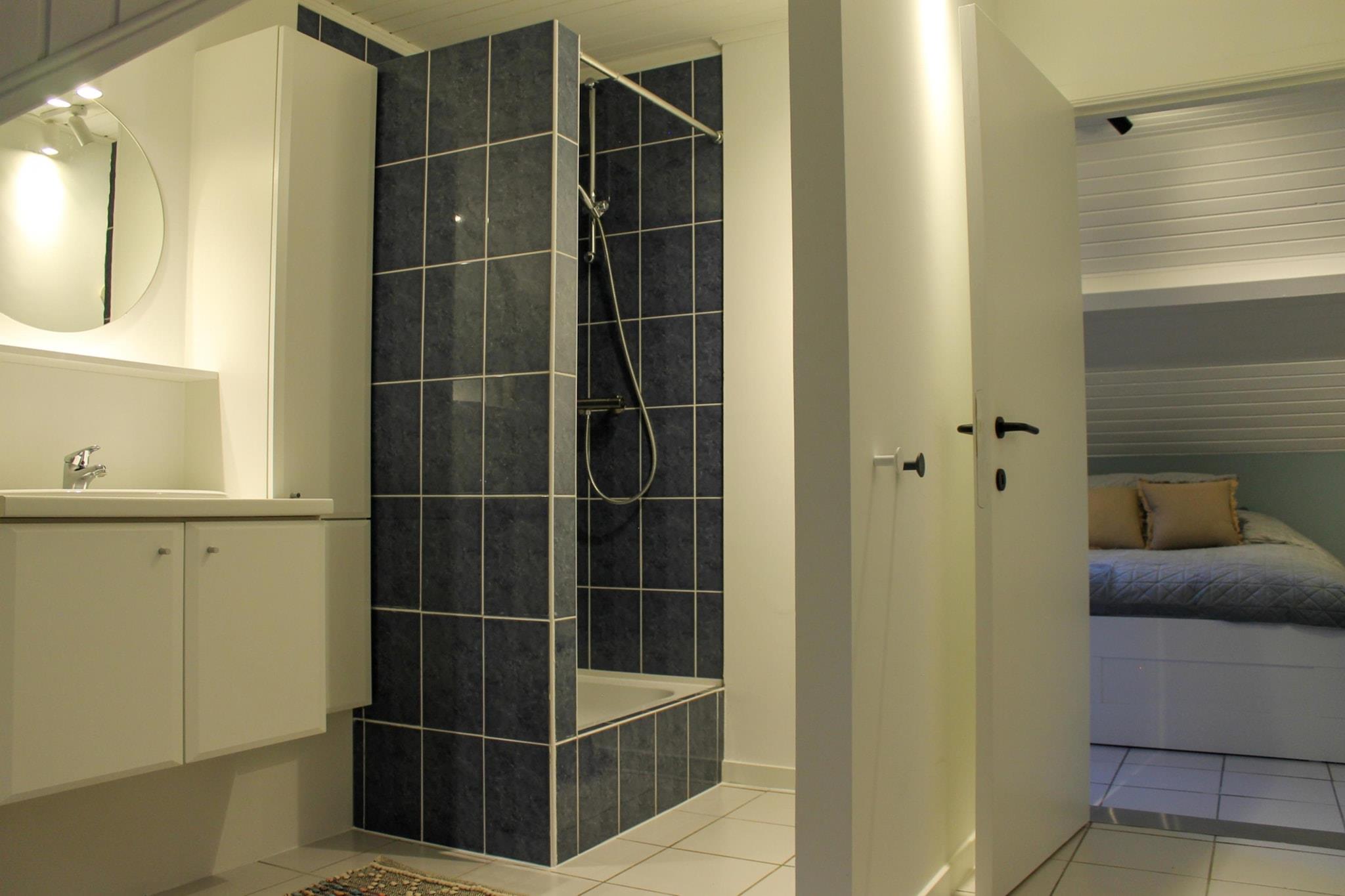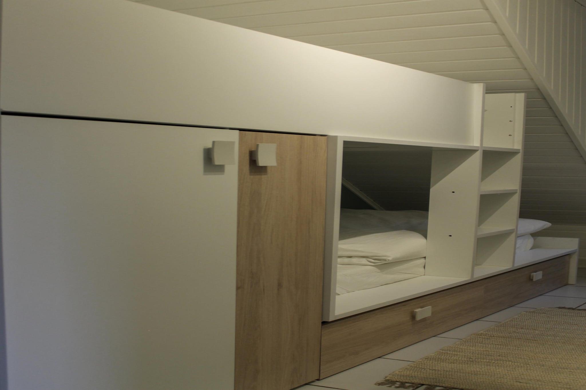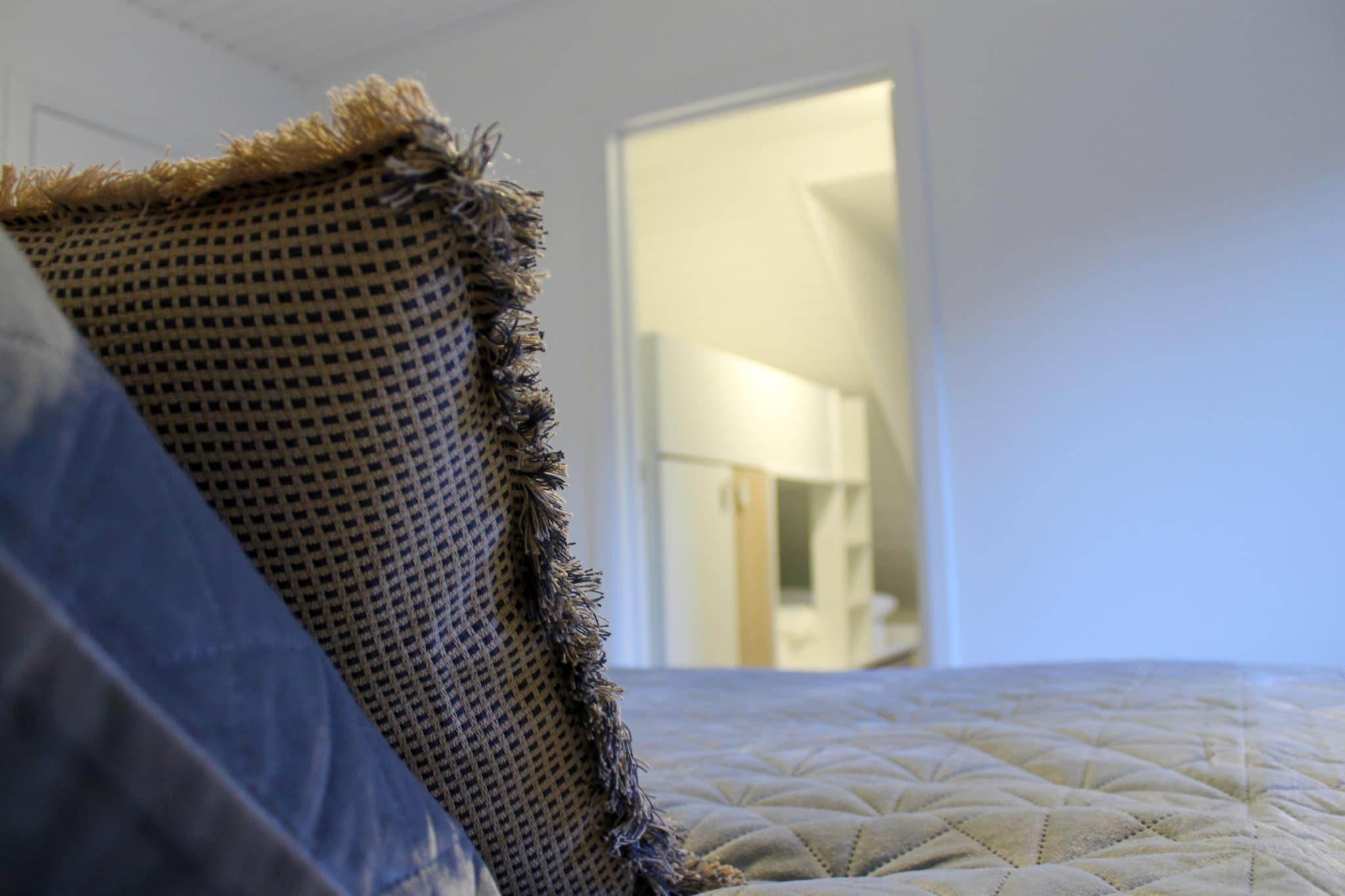 Stueetage: (Indgang , Køkken(kogeplade(induktion), espressomaskine, ovn, opvaskemaskine , køleskab), forrådskammer(toilet, vaskemaskine, tørreskab), stue / spisestue(Fjernsyn(digital, Smart-TV), spisebord, sofahjørne, sofahjørne, barnestol, hyggespil), Soveværelse med badeværelse(dobbeltseng, bruser, håndvask), toilet(toilet)) På 1. etage: (soveværelse(dobbeltseng, dobbeltsovesofa(140 x 200 cm)), soveværelse(dobbeltseng, baby crib(free)), Soveværelse med badeværelse(køjeseng, bruser, håndvask), badeværelse(badekar, håndvask, håndvask), toilet(toilet)) terrasse, have(indhegnet), cykelopbevaring, havemøbler, grill, parkering, havepejs, Haveskur